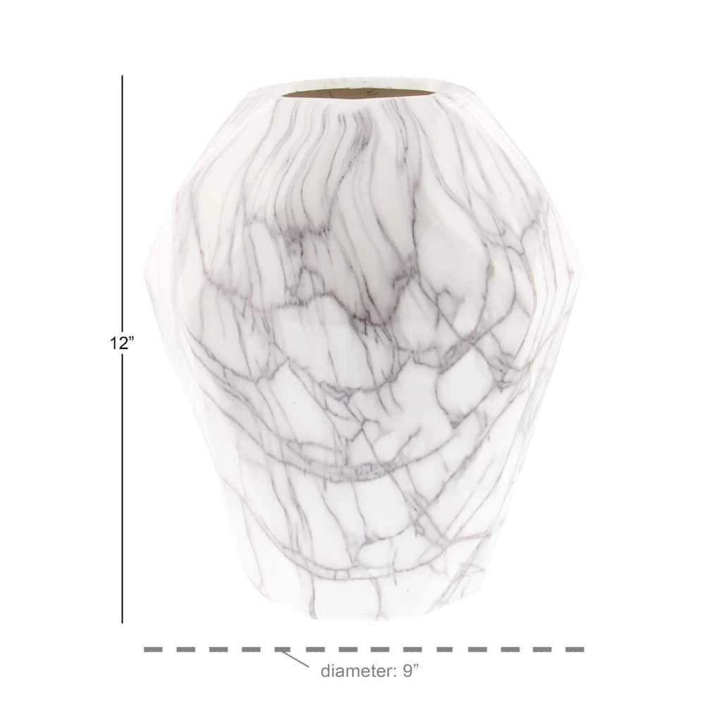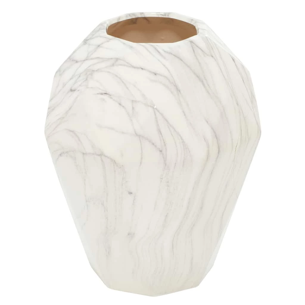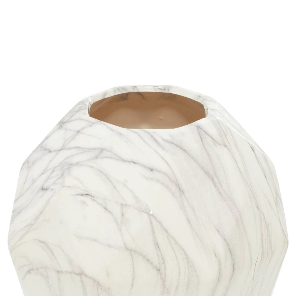 The timeless appeal of this contemporary style white marbling inspired ceramic vase will go well in your classy living space. It features a white marbled finish, a wide rim, and a grey marble accent lines. Its elegance lies from its base to the rim all in a traditional jar design. Place this on tables or shelves and stir curiosity in your contemporary living space.