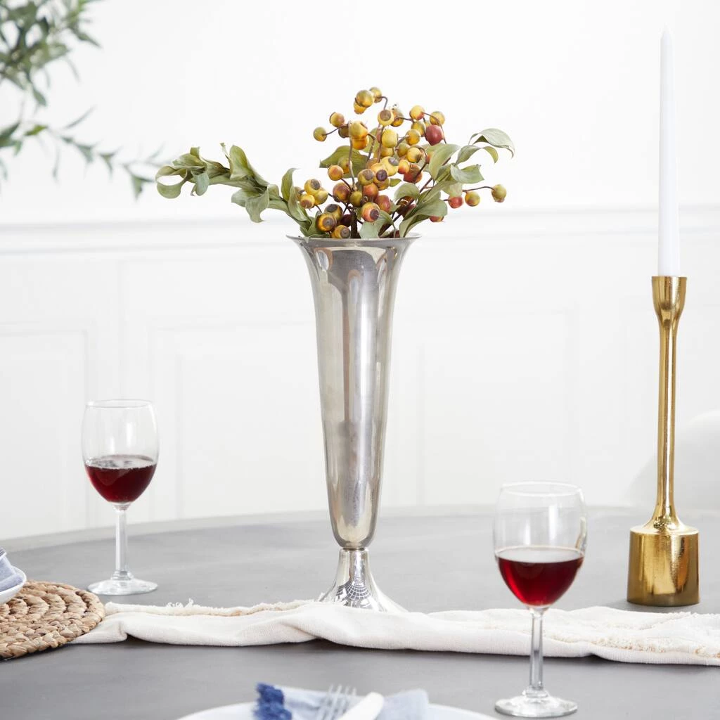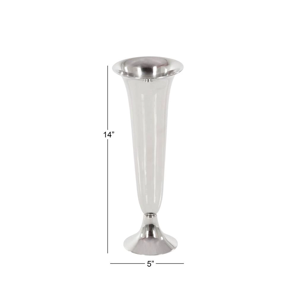 No classic detailed home will ever be complete without this unique silver tall aluminum trumpet vase. The trumpet design of this tall vase is remarkable and truly spotless. Its slender design is even more accentuated by the polished silver finish on its spotless pure aluminum material construction. This vase also features a wide mouth and base for easier displaying on tables or surfaces in your contemporary inspired living space.