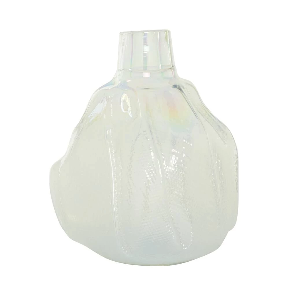 This white vase is an earthenware made from molded glass. It works as a vase, as a dΓ©cor holder, and as a tabletop exhibit, offering both style and function for shabby chic and mid-century modern interiors. Its shaft is wide at the center and has a narrow opening. It stands 14″ tall and is best used as a standalone dΓ©cor or with faux flowers or botanical.