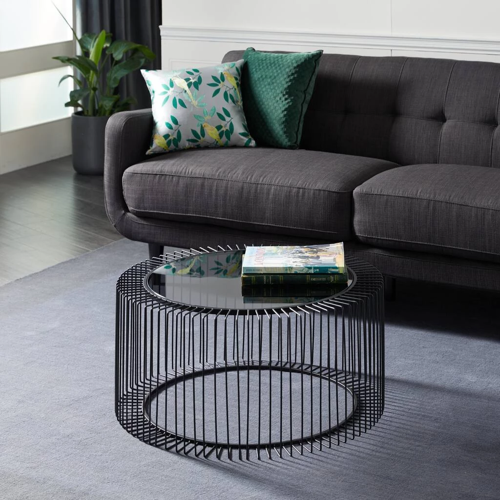 This metal coffee table with a glass table top lets you add eye-catching décor objects, such as a small indoor planter and contemporary sculpture. Useful and elegant, coffee tables are more than just a pretty piece of furniture in front of your couch.