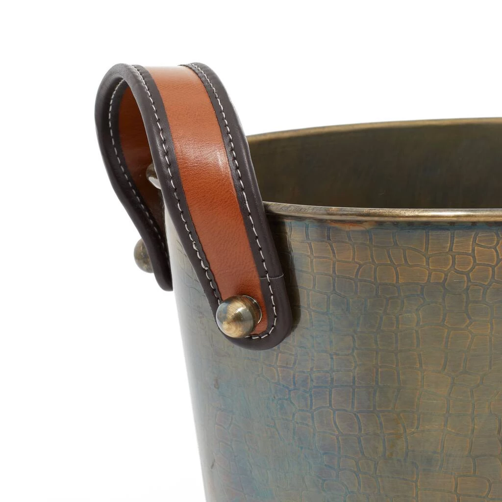 Enjoy your chilled wine, champagne, or beer in style with this contemporary stainless steel bronze bucket cooler with leather handles. Display your wine bottles with style and make everyone thirsty with envy. Looks stylish in your living room or kitchen as a way to display and serve your favorite wines.