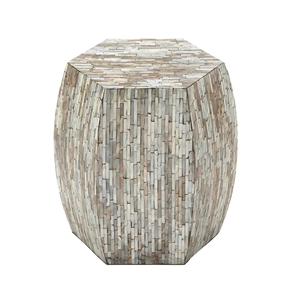 Create a signature mood for your home with this shell mosaic accent table. Use it to transform the living room, library, bedroom, waiting area, or hallway.Β