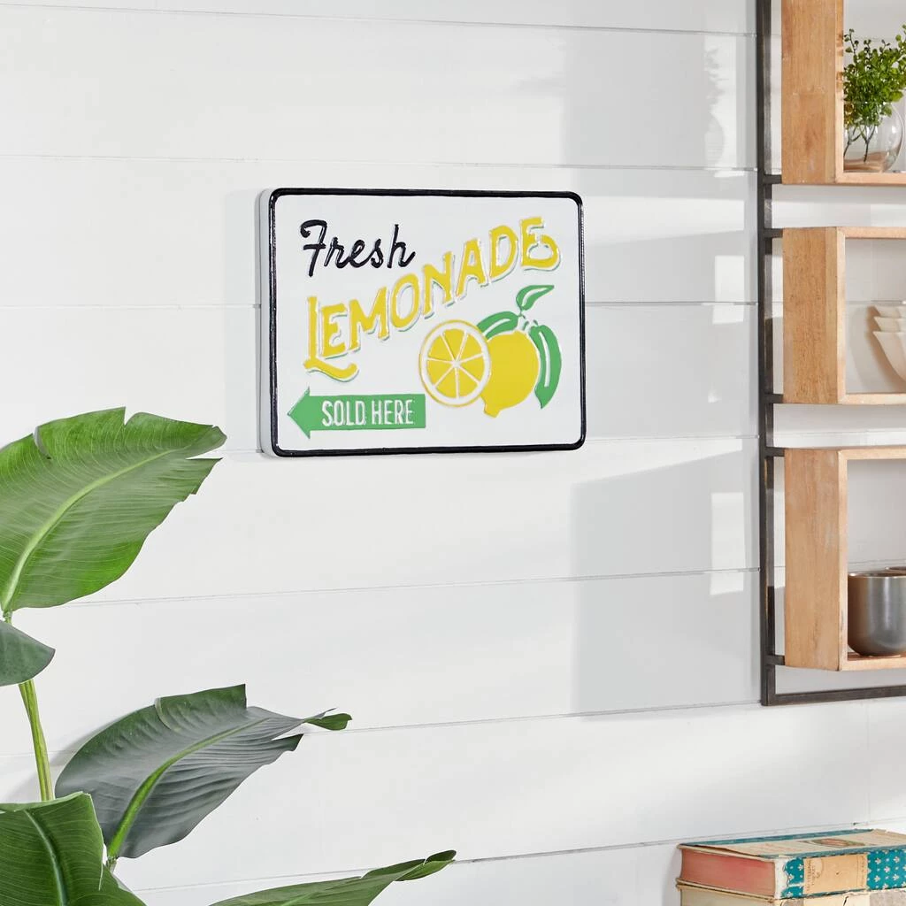 The best way to accent your wall space and add a touch of pizzazz to your home is with wall dรฉcor. This bright, cheerful wall sign reads “Fresh lemonade sold here” and arrives just in time for summer! This design is best appreciated against solid-colored backgrounds in farmhouse settings. It makes great, unique dรฉcor above mantles, console tables or on any wall. This item comes with metal loop backing for easy hanging.