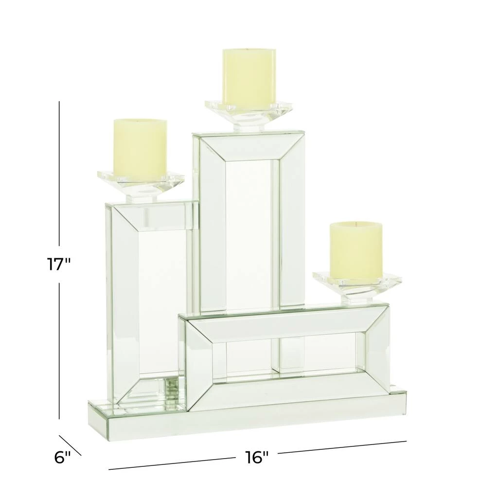 Use this candle holder centerpiece to create a dazzling scene on your mantel or end table. Delight your guests and make any occasion extra special by adding a lighted or flameless candle to this candle holder centerpiece. Made with a sturdy base, it is perfect for creating an elegant atmosphere at your table top or mantel. Designed with black rubber stoppers at the base that prevent scratching furniture and table tops as well as sliding around. This decorative candle holder will hold three pillar candles.Β