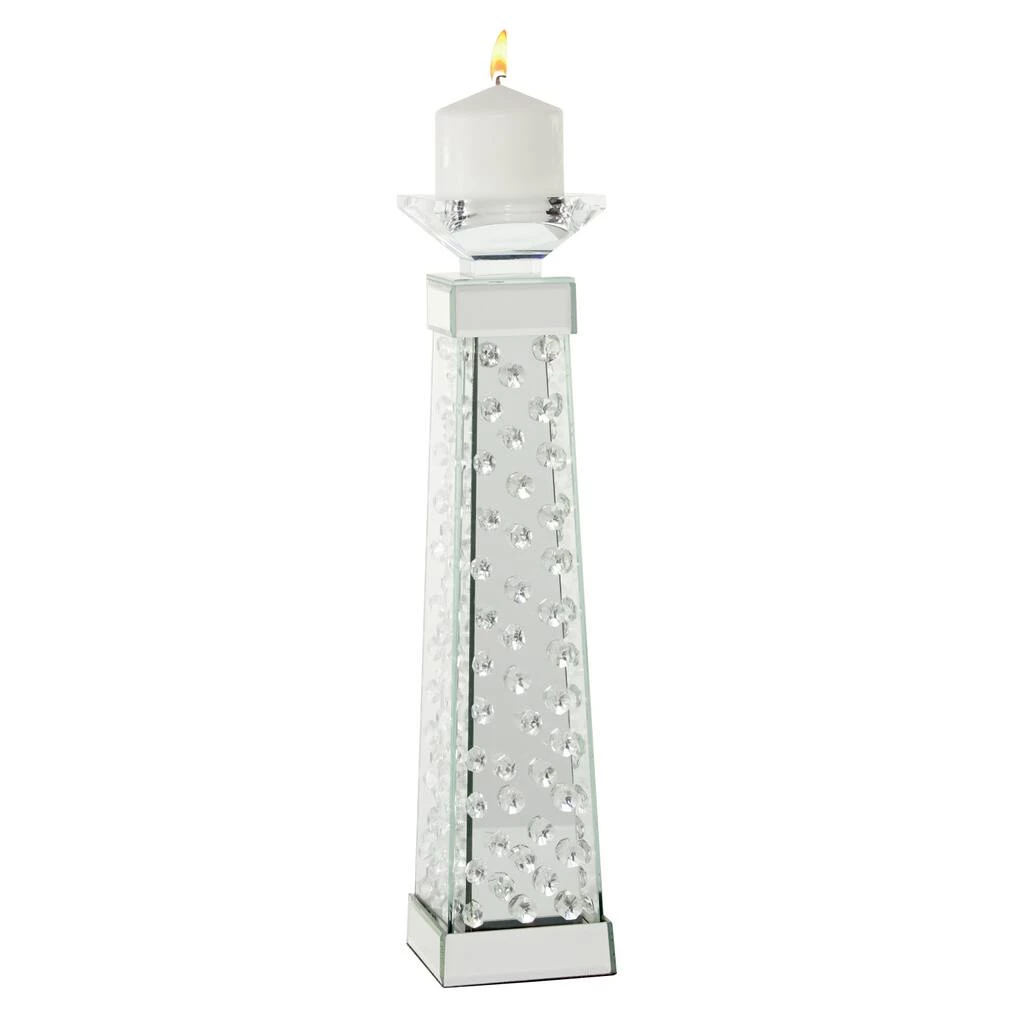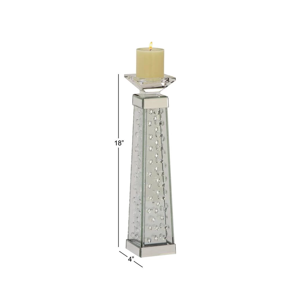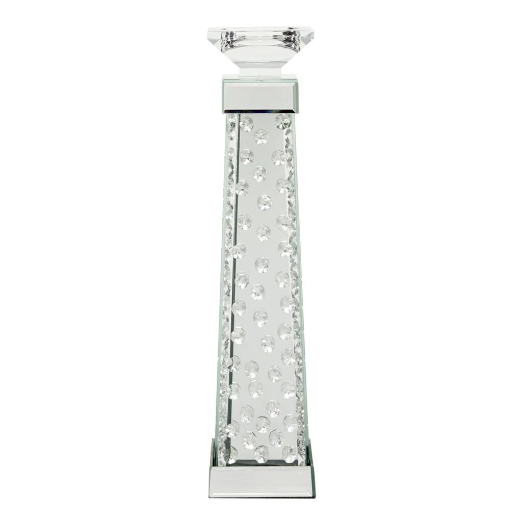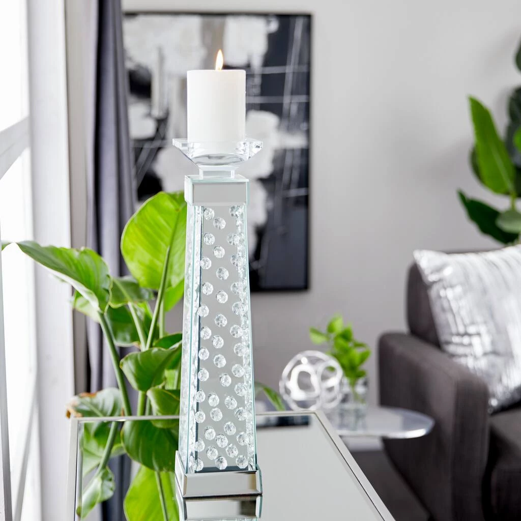 Use this decorative candle holder to add light to a glam-style space. Delight your guests and make any occasion extra special by adding a lighted or flameless candle to this candle holder centerpiece. Made with a sturdy base, it is perfect for creating an elegant atmosphere at your table top or mantel.Β
