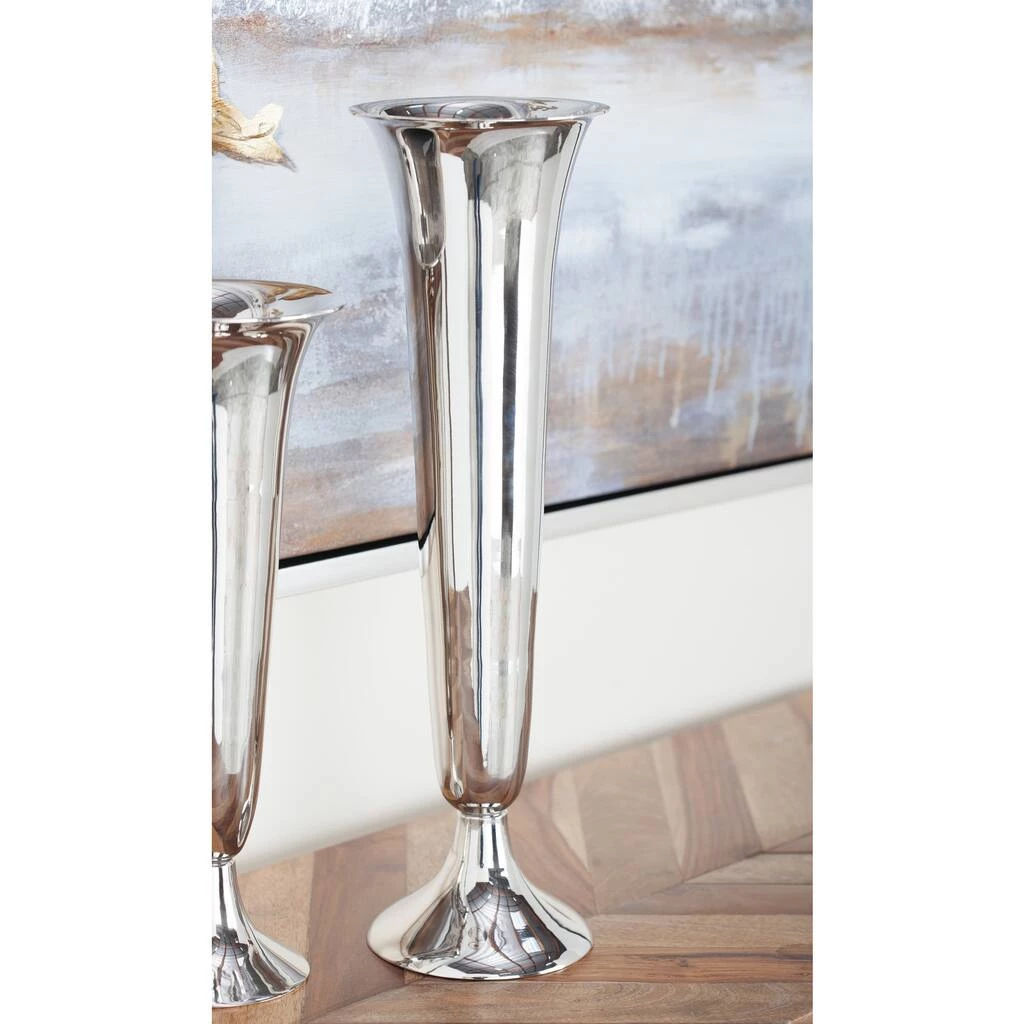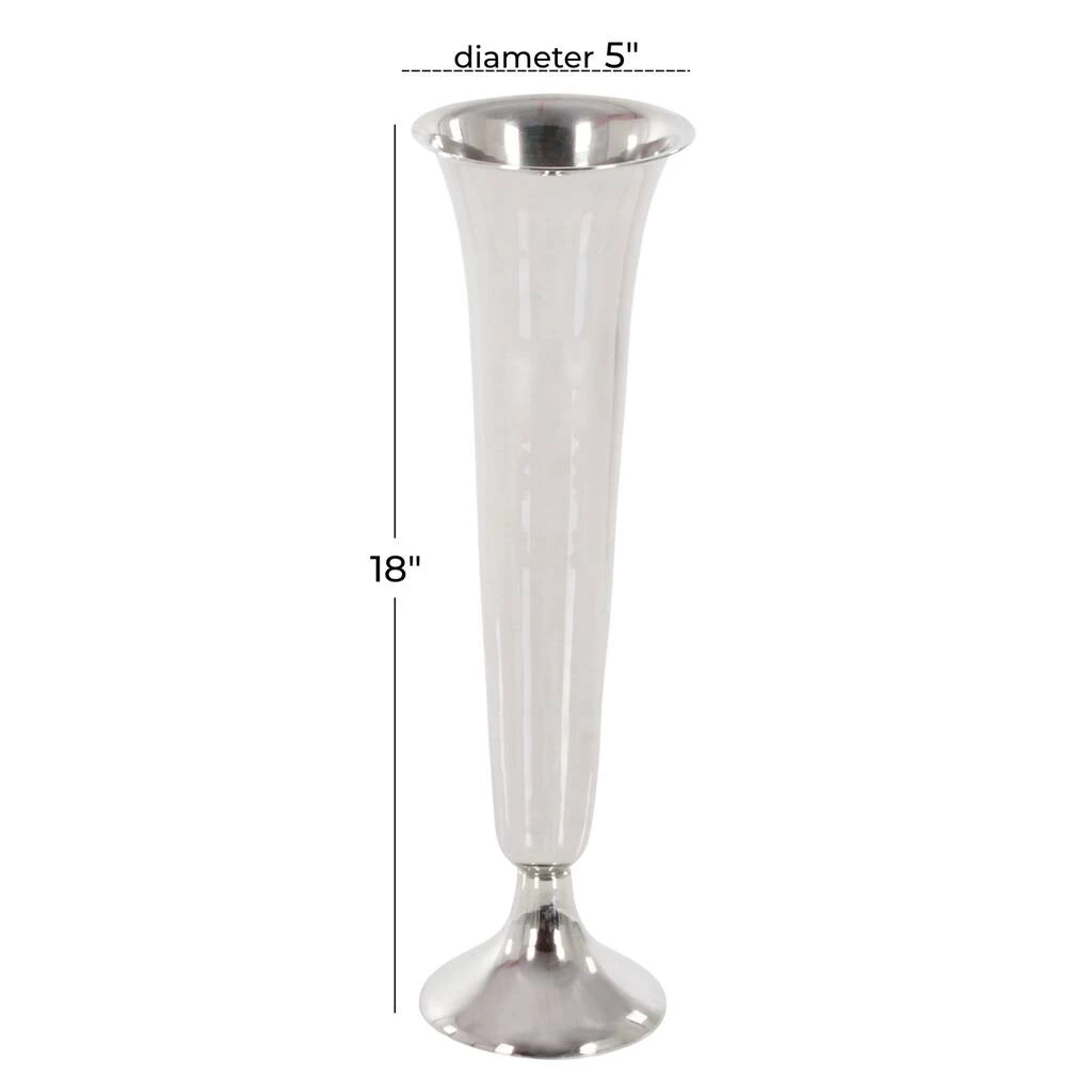 No classic detailed home will ever be complete without this unique silver tall aluminum trumpet vase. The trumpet design of this tall vase is remarkable and truly spotless. Its slender design is even more accentuated by the polished silver finish on its spotless pure aluminum material construction. This vase also features a wide mouth and base for easier displaying on tables or surfaces in your contemporary inspired living space.