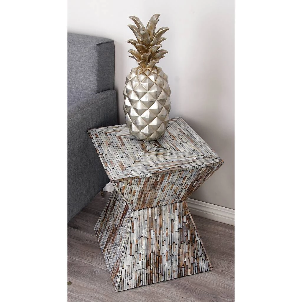 Mussel shells on the surface of a geometric shape concept goes well with contemporary interiors. Use it as an accent piece in the living room, library, bedroom, waiting areas, or hallways of you home.