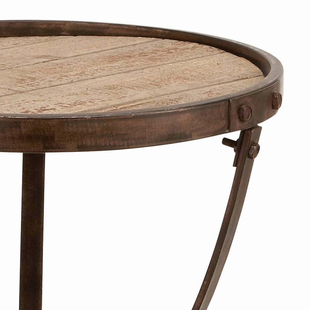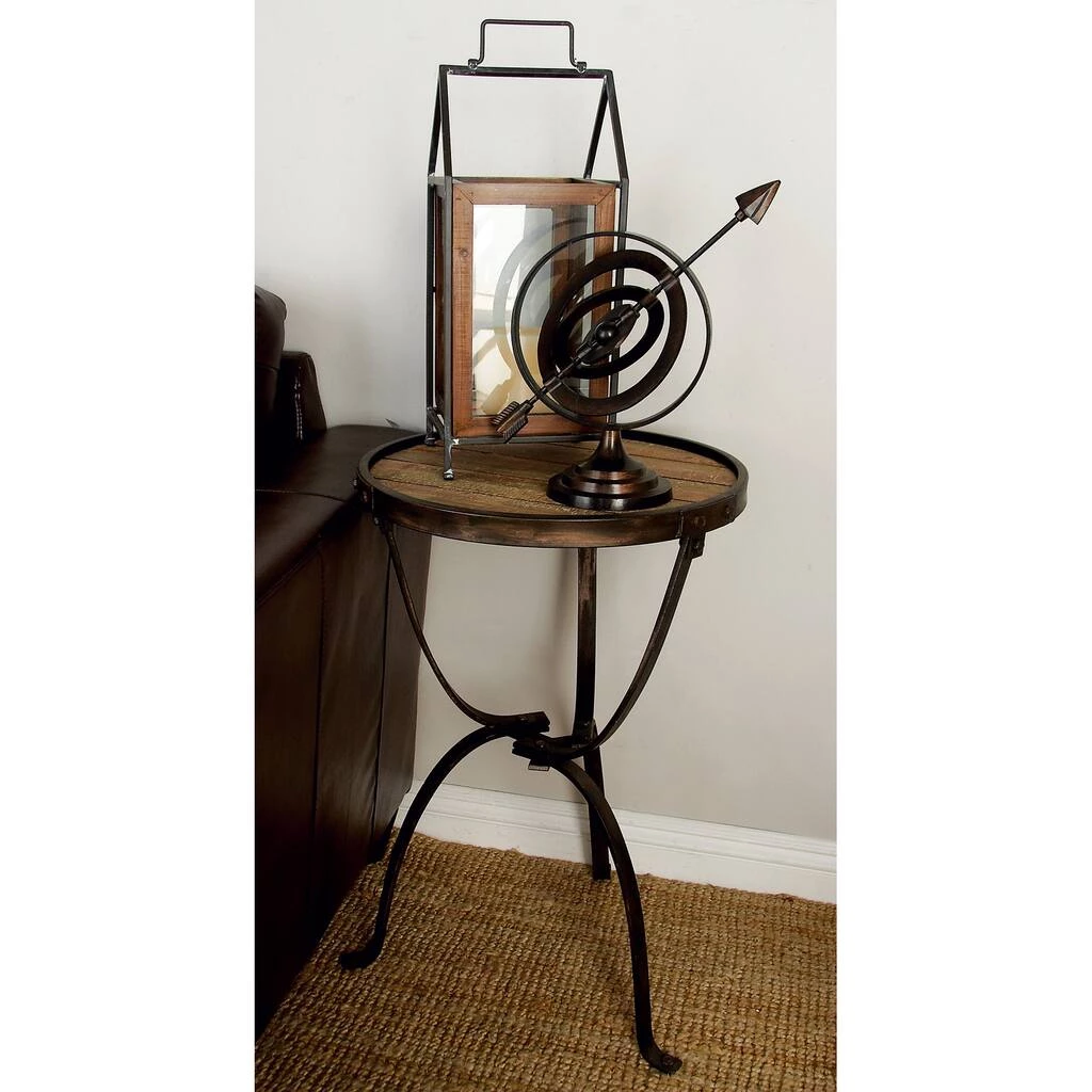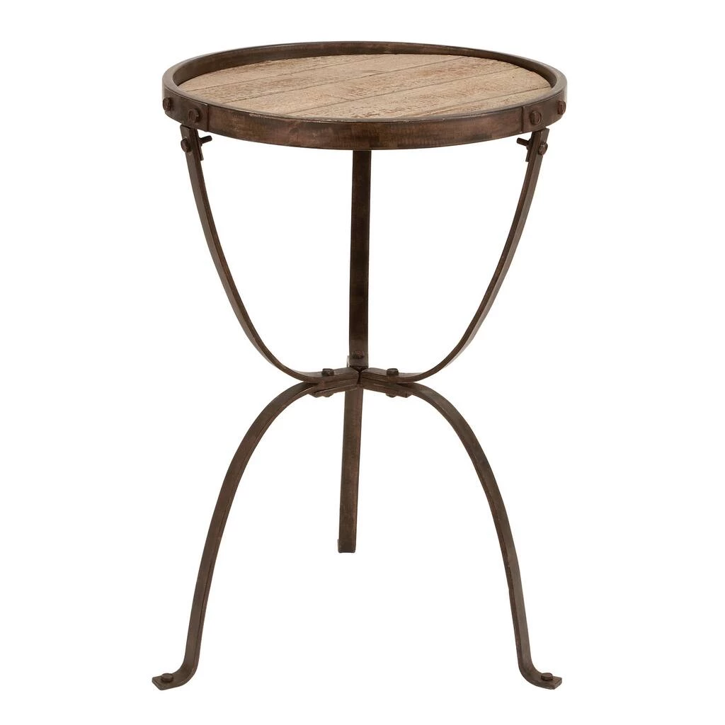 Add character to your living room or hallway corner with this rustic metal and wood accent table. Use it as an accent piece in the living room, library, bedroom, waiting areas, or hallways of you home. A compact friendly table providing you with additional storage space any where in your home.Β