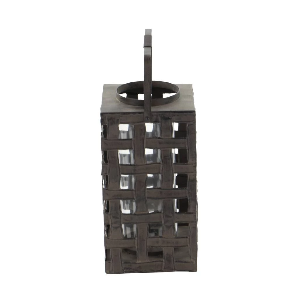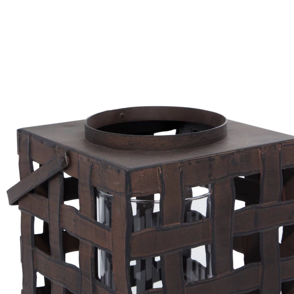 Add this candle lantern décor to your coffee table or mantel for industrial style. Delight your guests and make any occasion extra special by adding a lighted or flameless candle to this lantern. Made with a sturdy base, it is perfect for creating an elegant atmosphere at your table top or mantel. Designed with black rubber stoppers at the base that prevent scratching furniture and table tops, as well as sliding around. This metal candle lantern will hold one pillar candle.