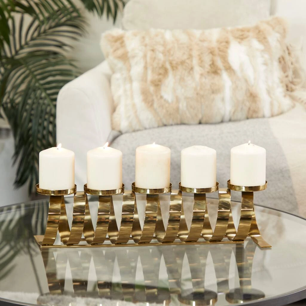 Give your space a radiant illumination with these beautifully crafted candle holders. Made with a sturdy base, it is perfect for creating an elegant atmosphere at your table top or mantel. Illuminate your home with this gold candle holder that carries stunning design to accentuate your open wall space. This 5-plate candle holder can accommodate votive and pillar candles.