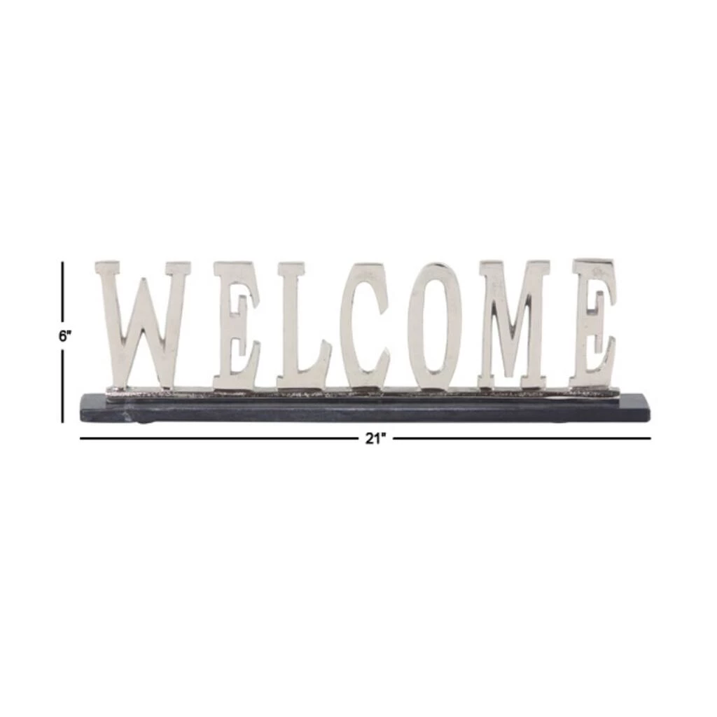 This welcome sign dΓ©cor will induce a much more chill atmosphere when displayed on tables or shelves in your glam style living space. Let these accent pieces provide a sense of style to your home by displaying them on top of a shelf, countertop, mantel, or an accent table. This home dΓ©cor is perfect for creating a focal point over your accent table, countertop, shelf, or mantel.