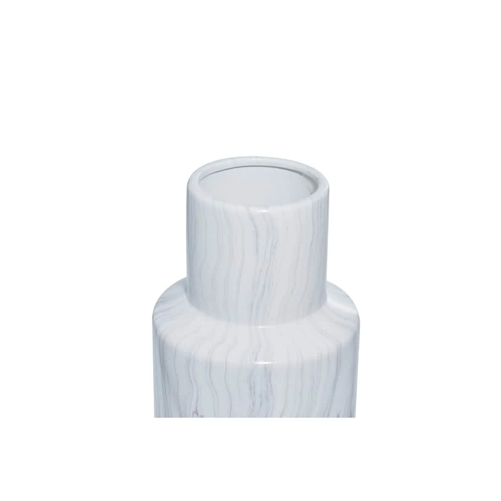 Add versatile and contemporary style to your space with this large white marbled decorative vase. The tall, cylinder vase shape is perfect for displaying tall vase filler and twigs, as well as filling up negative space against an empty wall craving texture. The versatile white and gray hues will work wonderfully with any color palette while adding texture and sophisticated style to your bedroom, dining room, living room, or office.