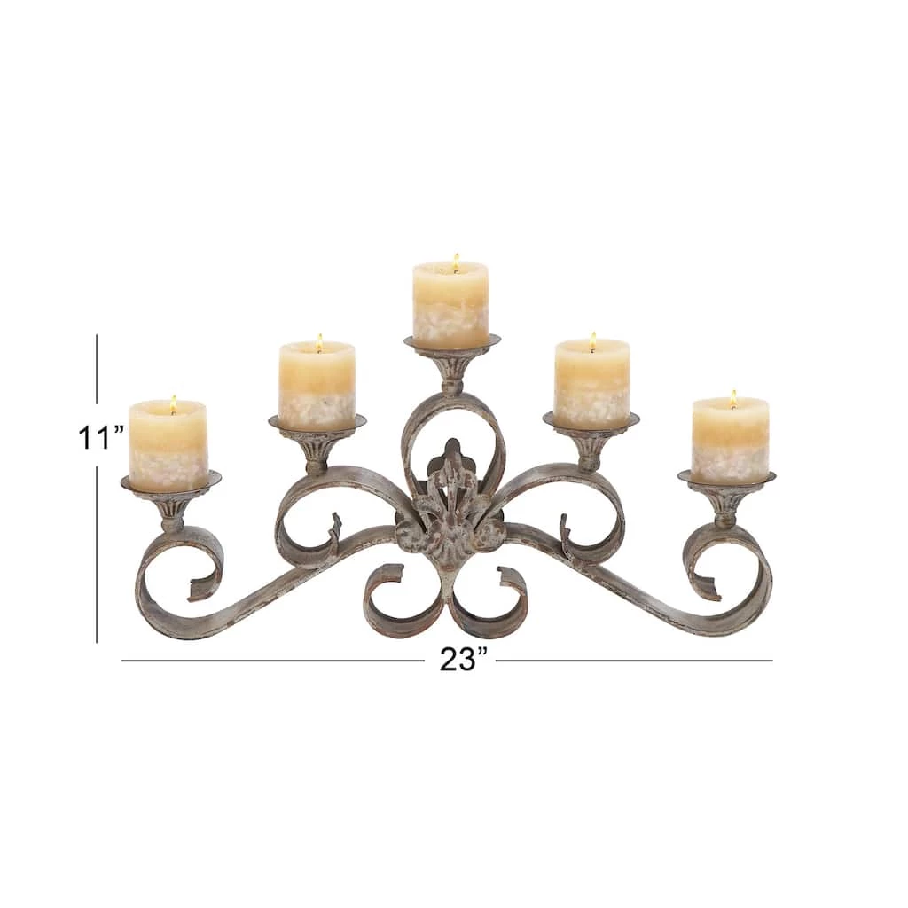 This iron candle holder that takes the shape of a candelabra style chandelier can hold 5 pillar and taper candles. Its overall exterior was given a rustic metal finish to suit rustic interiors. Use it as a soft light decoration on top of a console table in the dining hall or hallway or on top of a center table in the living room.Β