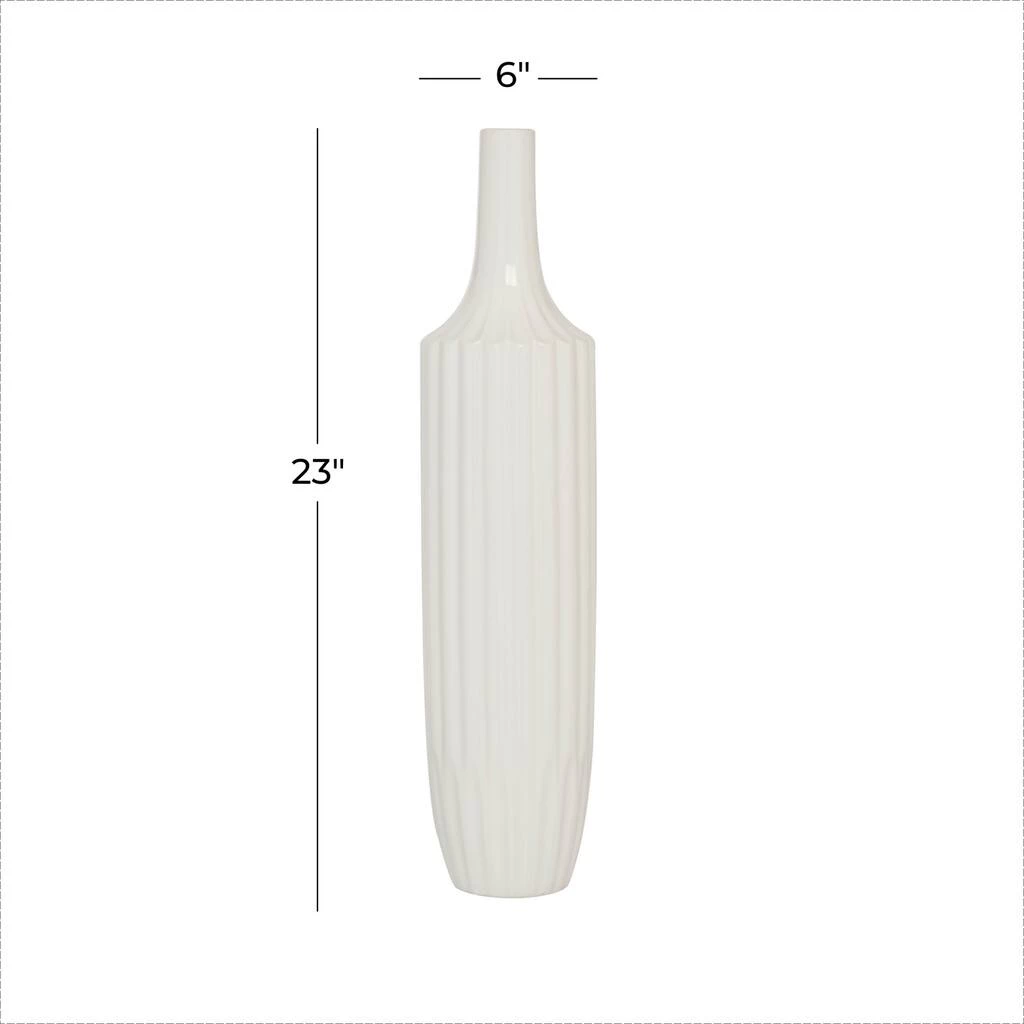 Make the most out of its simple and classic design in contemporary and modern inspired settings. The body features a ribbed texture that complements its tall and narrow mouth build. Put flowers in it, or use it as a stand-alone tabletop decoration. It also captures attention on top of wall dressers, in shelves, and next to wall mirrors.