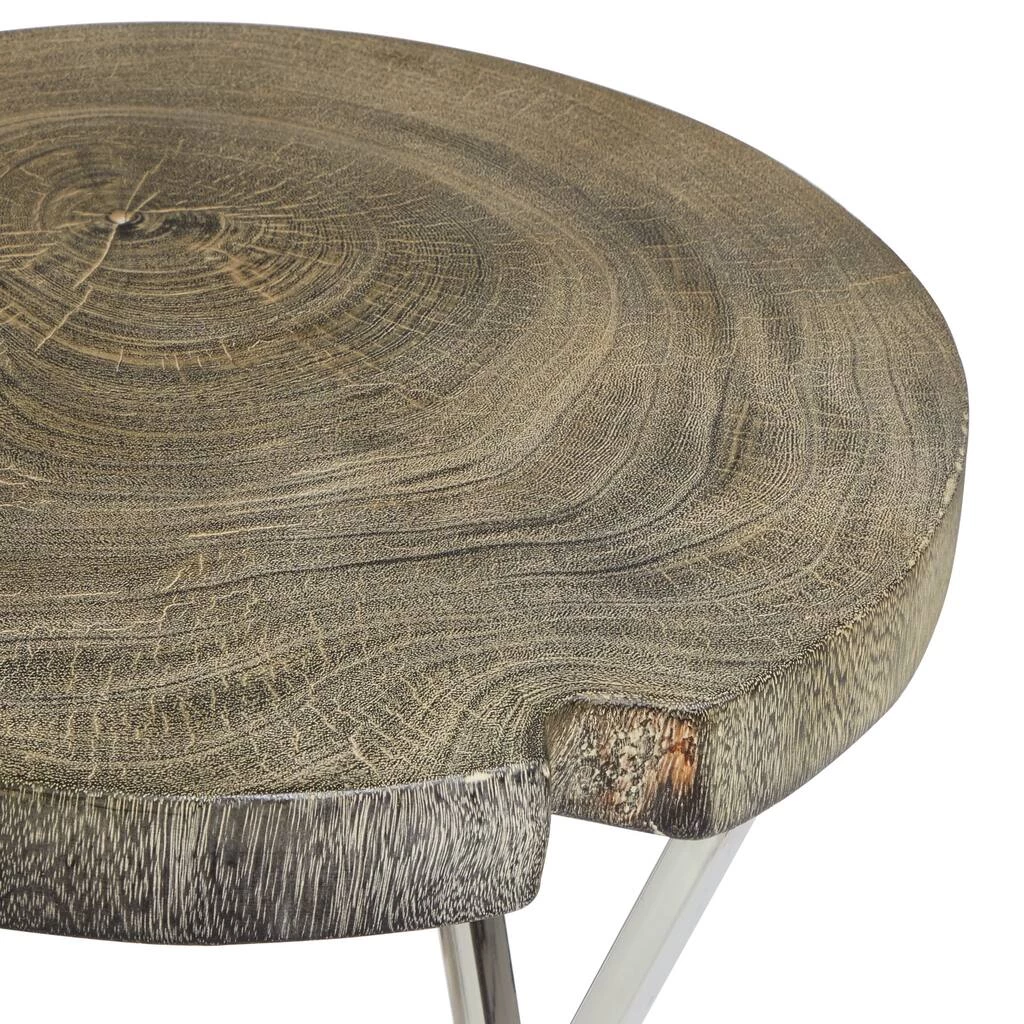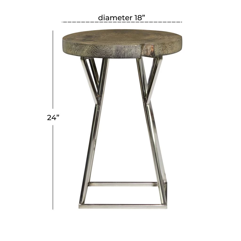 Add a fine touch of elegance in your modern inspired living space with this modern style round suar side table with stainless steel legs. This side table is in a category of its own since it is made from suar wood and stainless steel. The beautiful natural dark brown finish of the table surface is crafted from wood while the stable legs it sits in is forged from stainless steel. The unique sleek and low-profile design of the legs and the brown accent of the table surface will make an excellent addition to your living room space in your modern home.