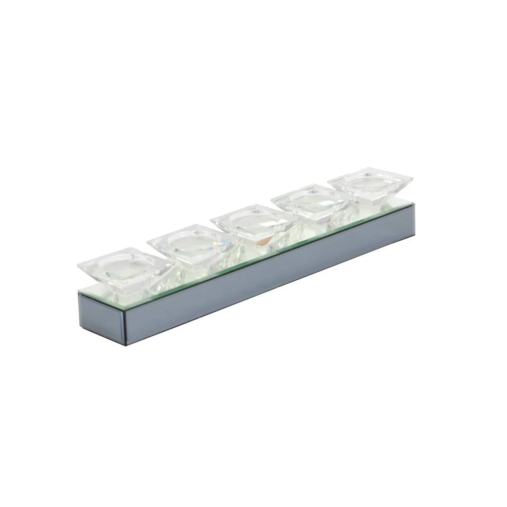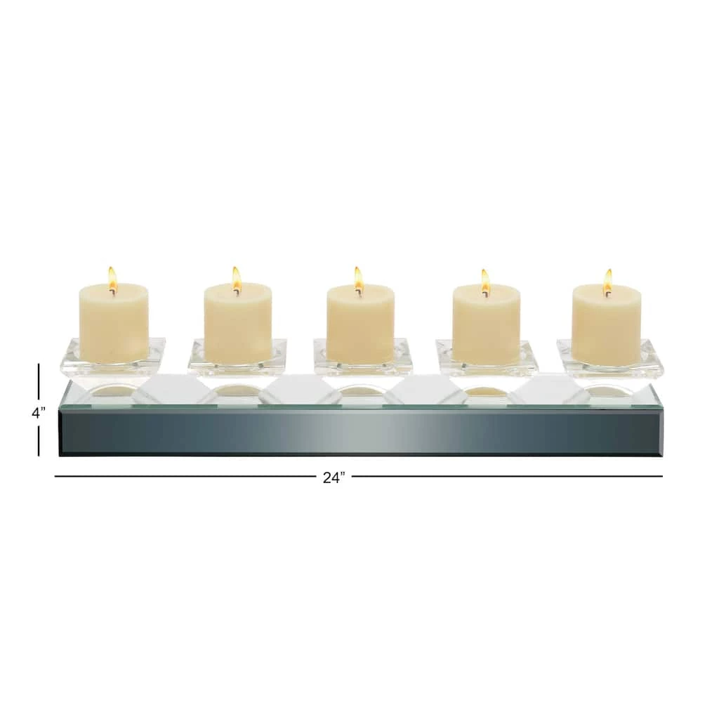 Use this candle holder centerpiece as an eye-catching addition to your mantel or coffee table. Delight your guests and make any occasion extra special by adding a lighted or flameless candle to this candle holder centerpiece. Made with a sturdy base, it is perfect for creating an elegant atmosphere at your table top or mantel. Designed with black rubber stoppers at the base that prevent scratching furniture and table tops, as well as sliding around. This decorative candle holder will hold five pillar candles.