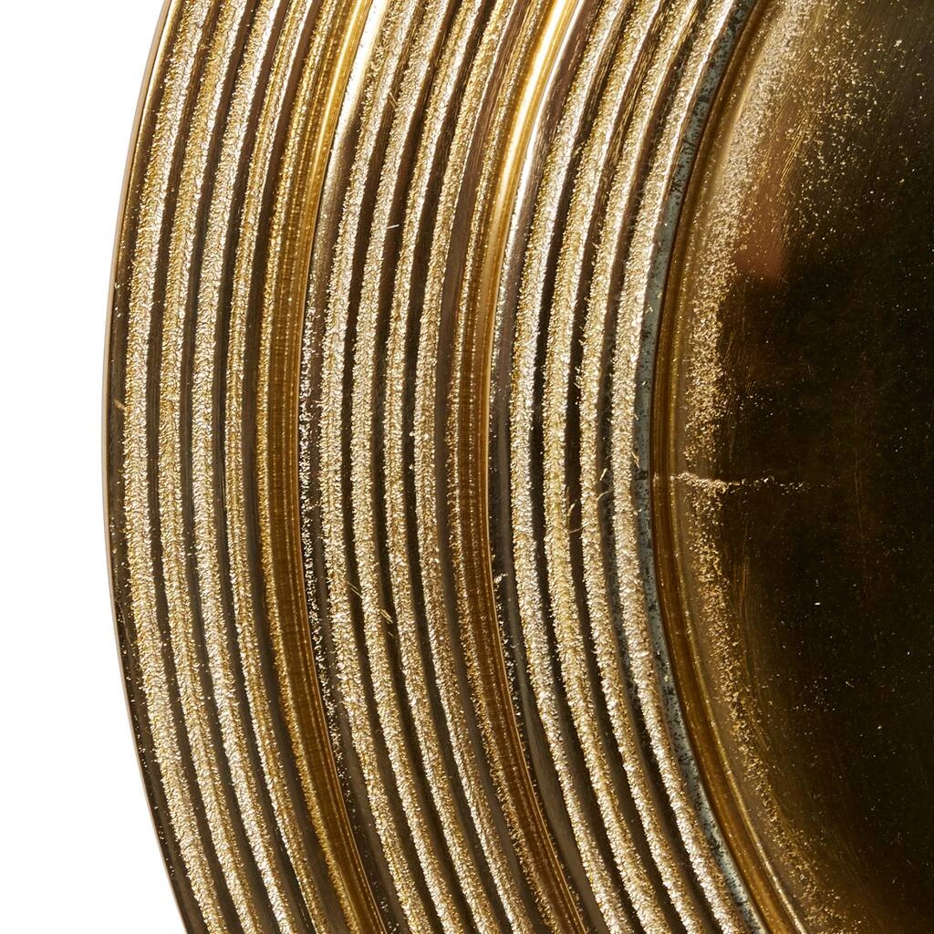 A mix of style and function, this small round 24″ Gold Aluminum Coastal Wall Clock adds Hollywood to most home interiors. The accent piece, made from aluminum, features a numberless gold-finished clock face. Layered, raised ridges highlight the clock’s outer frame while hands in a smooth black finish complete the sleek look. Display alone, or as a stylish supplement to a gallery wall, this clock is an excellent time-keeping accent in modern and glam style homes. This clock has a numberless face. This item hangs via keyhole hardware.