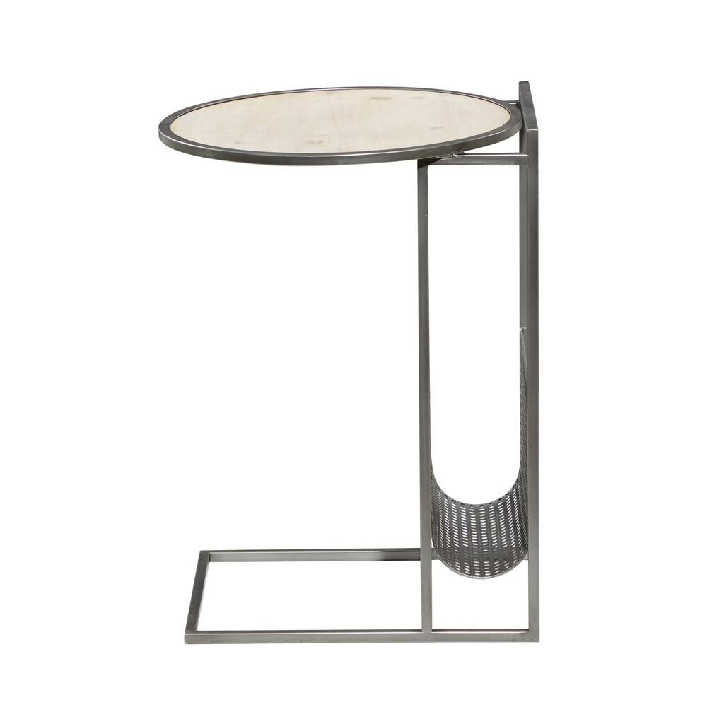 The playful design concept of this C-shaped side table balances any space in your home, it is convenient for compact space and features a magazine storage rack. Compact space friendly in design best against solid-colored backgrounds in modern or contemporary settings.