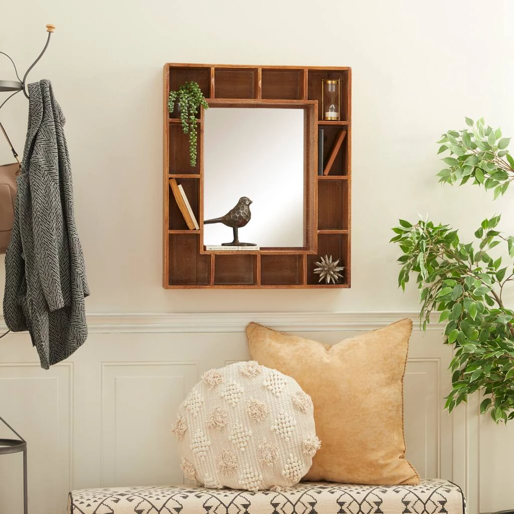 Organization in a traditional inspired living space can go a long way in interior designing especially with this traditional style rectangular wall mirror with organizational shelves. You get an amazing deal with an elegant wall mirror, with a lot of shelves for your storage needs. The sturdy wood material forms a rectangular border around the mirror at the center. This border also houses the storage shelves. The unique design of this piece will look good in your living rooms, bedrooms or even kitchen if paired correctly with the same genre in your traditional home.