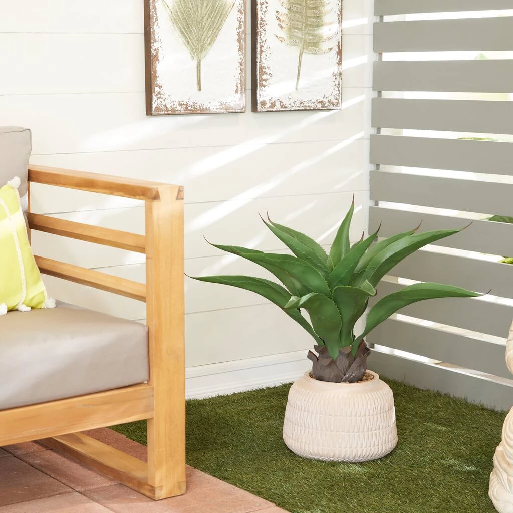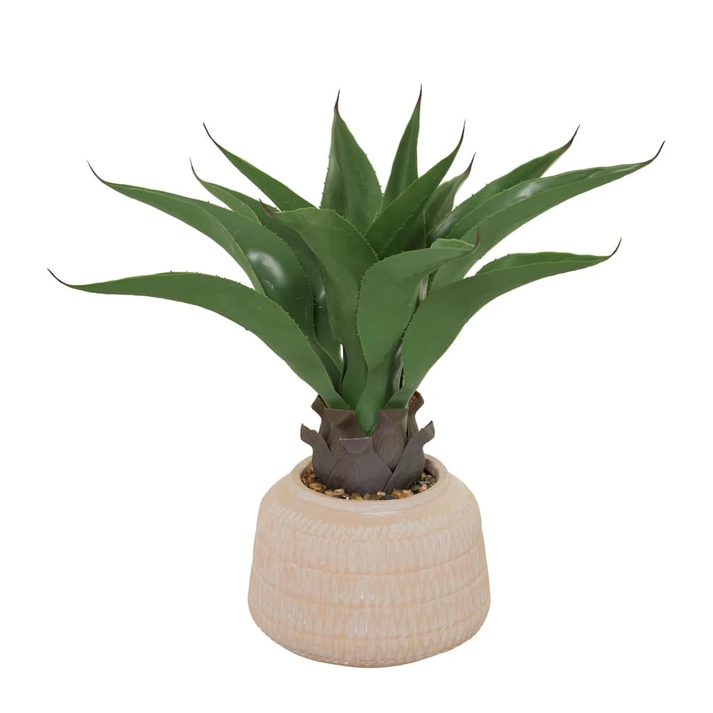 Add some greenery to your dΓ©cor with no maintenance. This chic artificial aloe plant will be a mesmerizing focal point in your home, particularly in pastel toned spaces and those with wooden furniture pieces. Use it as a centerpiece on the living room coffee table or as a corner accent piece by the hallway, console, or dresser.