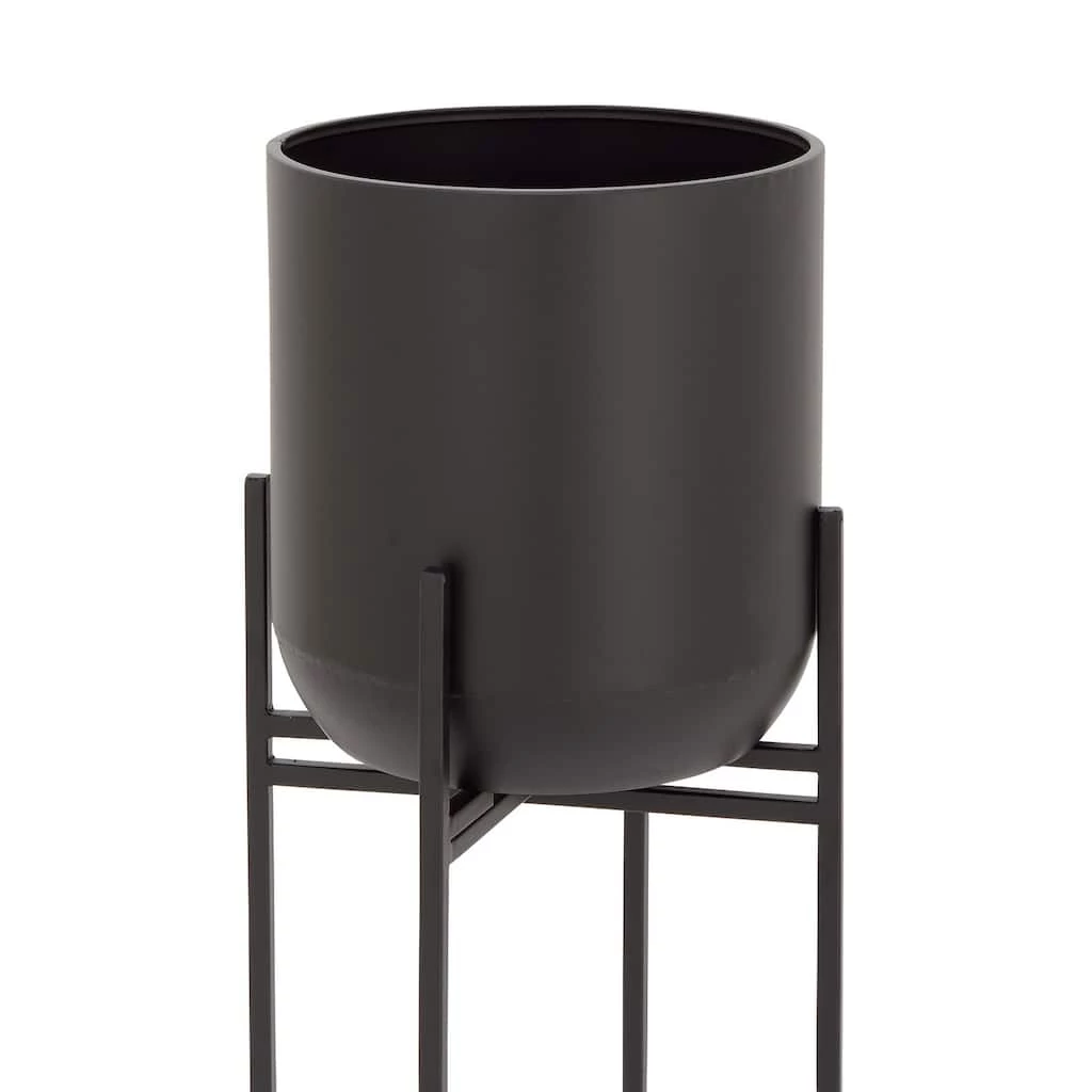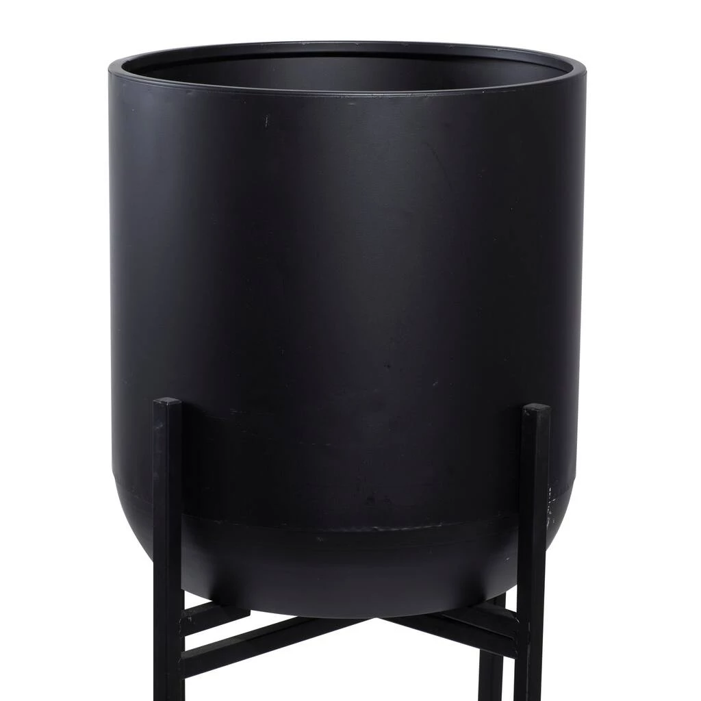 Simple design with a monochrome black finish, this modern planter stand features a large, bucket-shaped round planter top secured in a tall metal plant stand with an X-shaped base. The solid iron construction means this black planter is sturdy, lightweight, and suitable for both indoor and outdoor use. Indoor and outdoor planter with modern style for your deck, patio, or front door and indoors as accent dΓ©cor in your living room, bathroom, or bedroom.