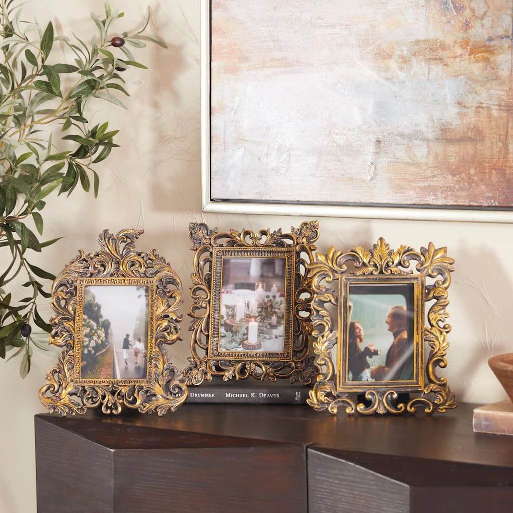 These traditional style photo frames will add a timeless elegance to your pictures when displayed together or individually in different surfaces or shelves. It is a great addition to your home decoration and will surely complement your existing furniture. Place this set in your living room, entry way or dining room and treat your space with a breath of fresh air.
