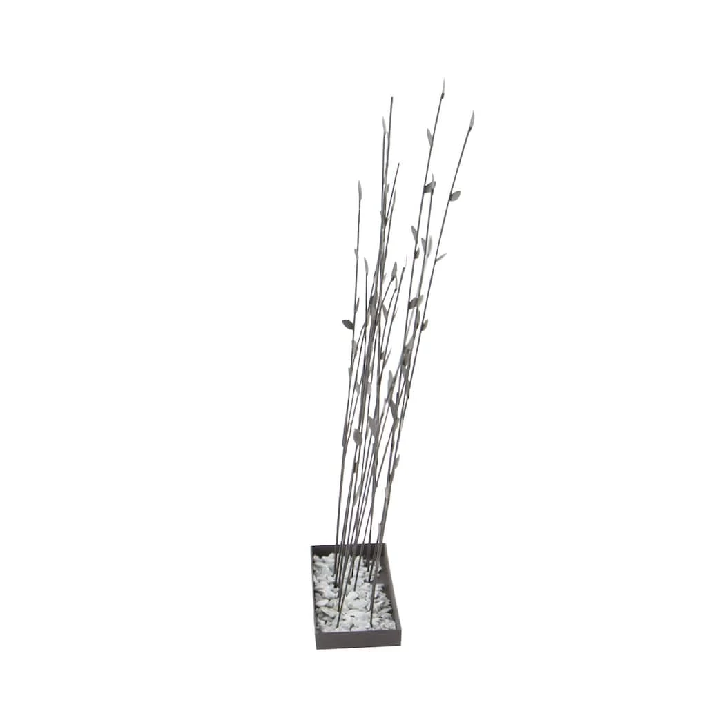 This black metal leaf sculpture with rock details is a sophisticated addition to your contemporary home space. The sculpture is made with metal and features ivory-toned rock details highlight the neutral black finish of the leaves, showcasing elegance.
