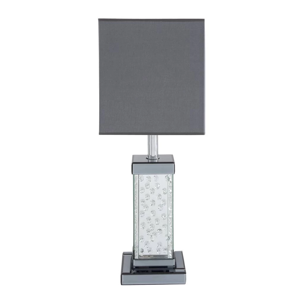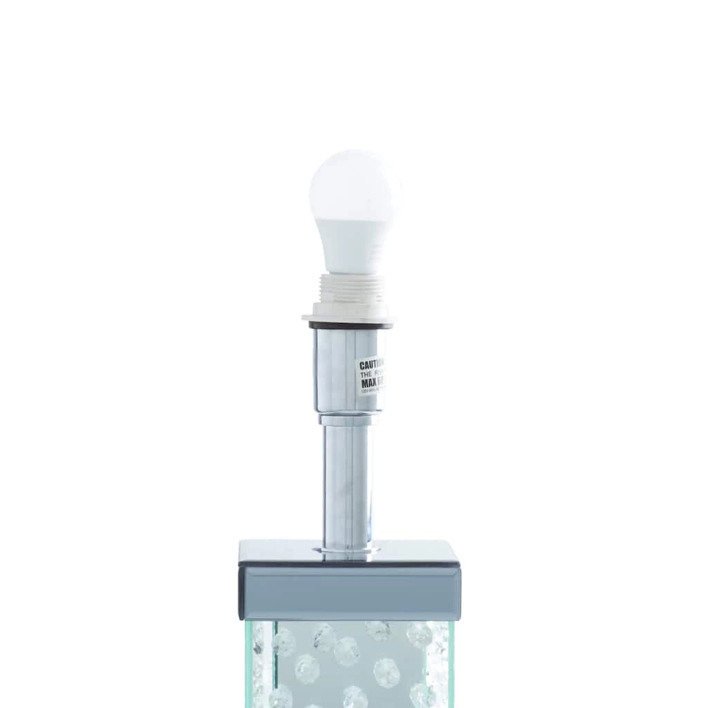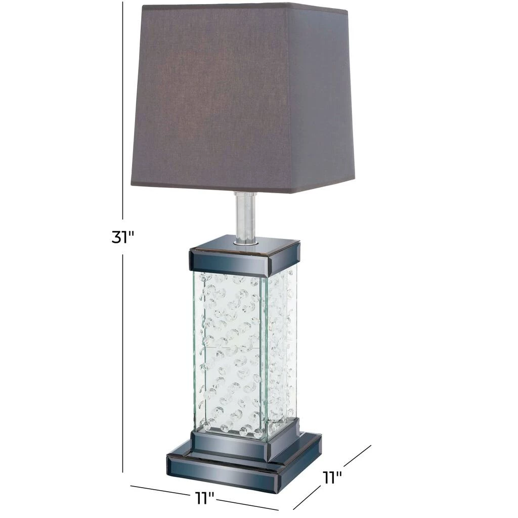 Add a touch of glamour to your surroundings with this unique table lamp. The rippled glass detailing and crisp, modern shade are sure to impress your guests, friends, and family.