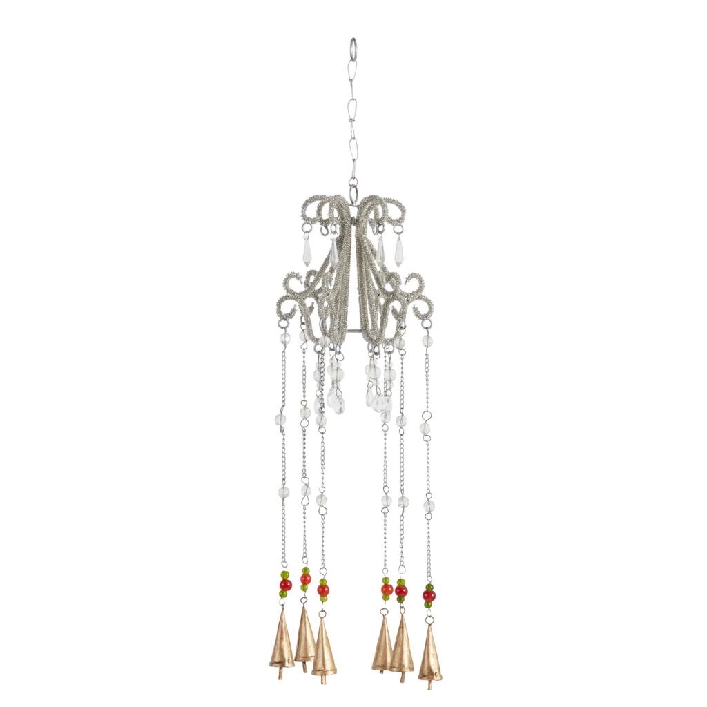 This chandelier wind chime can dazzle anyone who strolls through your garden or up to your porch. Its striking silver color and melodic sound brings a subtle elegance to any space.Β Made in India, the wind chime is primarily composed of iron, but it also features glass beads that look spectacular in the sunlight. It makes the perfect gift for anyone who treasures their outdoor space.