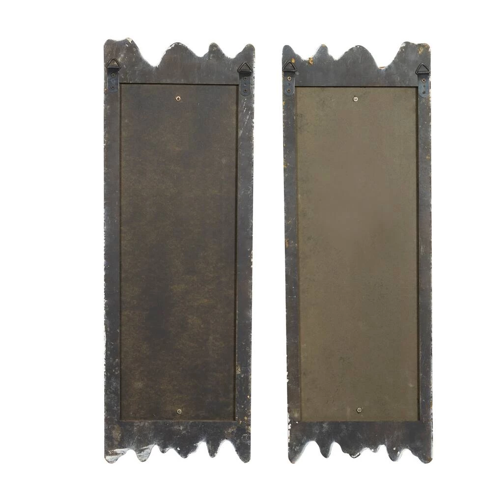 Whether your home displays a traditional, rustic, or French country style, this 2-piece fleur-de-lis wall dΓ©cor set will add romantic elegance to any empty interior background. Irregularly cut rectangular wood plaques with a distressed finish put the spotlight on rusted iron-made scrolling and fleur-de-lis adorned gate-like constructions. Each 32″ x 11″ uneven wood slat-looking panel hangs vertically via two triangle backing hardware at the top section. These wall panels come as a set of 2. This item comes shipped in one carton.