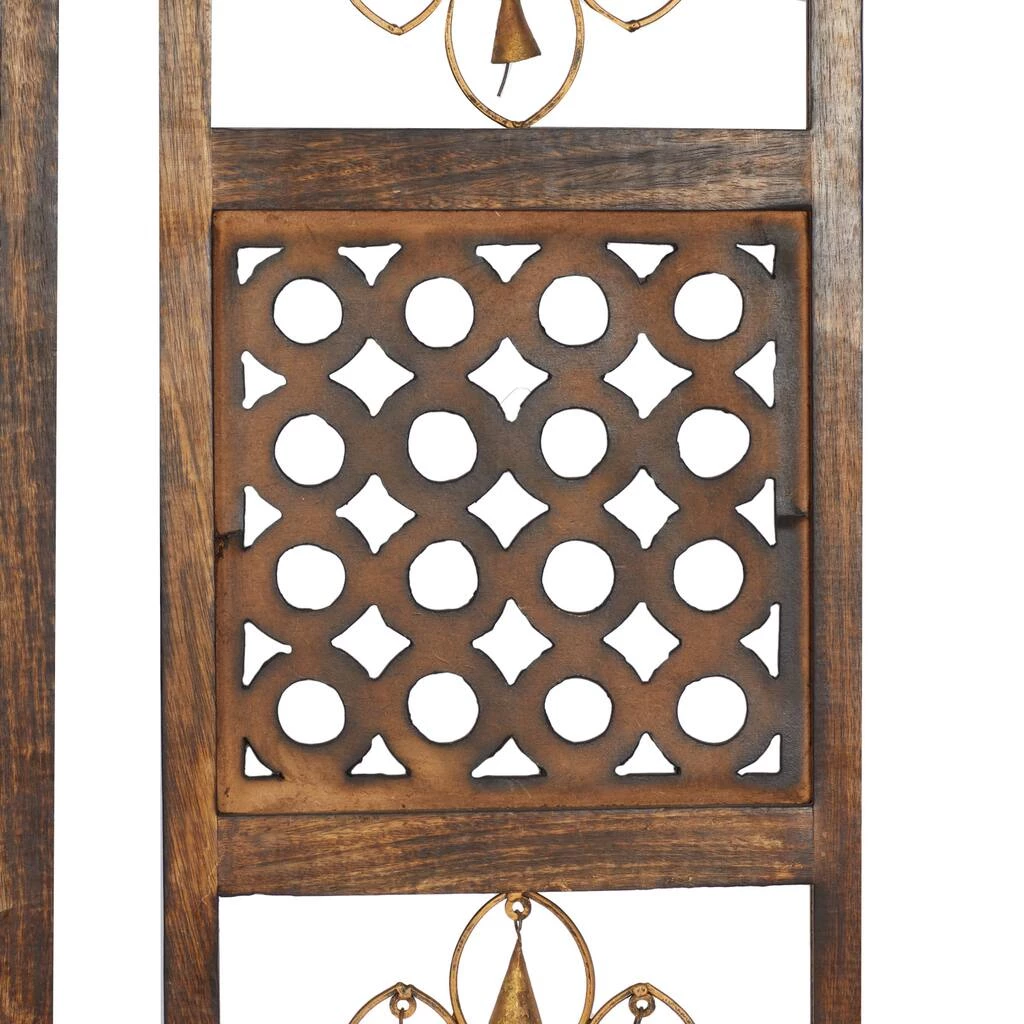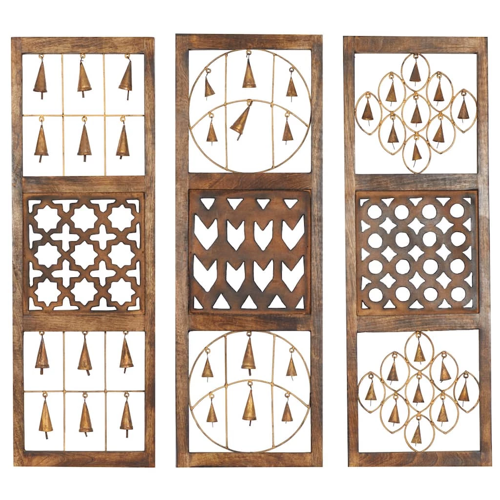 You donβt need to take a day off to decorate and make your walls look great. Make your home exceptional in an hour with this 36″ Brown Metal Farmhouse Wall Decor, 3ct. featuringΒ three rectangular walnut brown panels made of wood and iron, and flaunts hanging bells and openwork detailing. These rectangular wall panels suit eclectic spaces that crave for stylish home decoration. Hang this trio together or you can display them in different areas of your home to bring a relaxing ambiance while adding an eclectic atmosphere to your space.