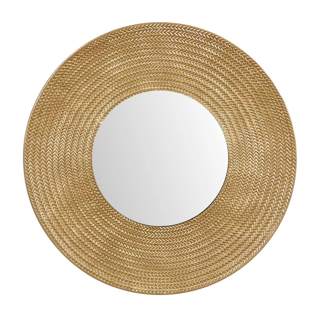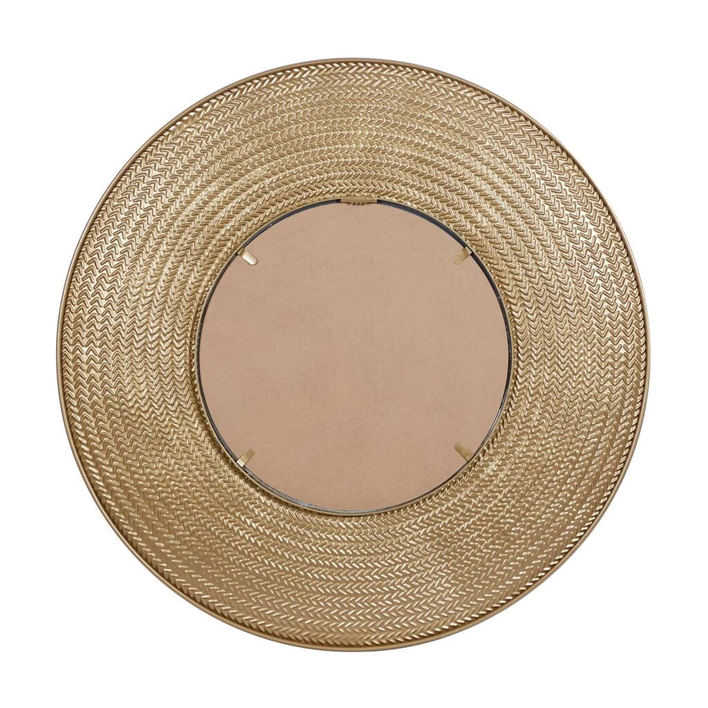 Add a touch of gold luxury in your boho inspired living space with this boho style round gold metal chevron wall mirror because being laid-back, does not mean you have to sacrifice elegance. This metal wall mirror showcases a stunning chevron pattern on the wide gold metal frame that holds the mirror at its center. The polished gold finish is also complemented by the highly reflective glass mirror of this piece. This would turn your boho inspired living space into an instant carefree, yet luxurious haven as well. Easy-to-hang with its sawtooth metal hardware at the back.