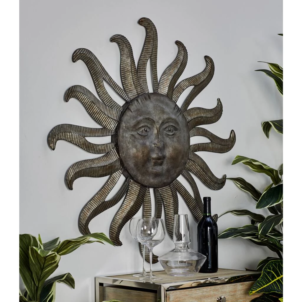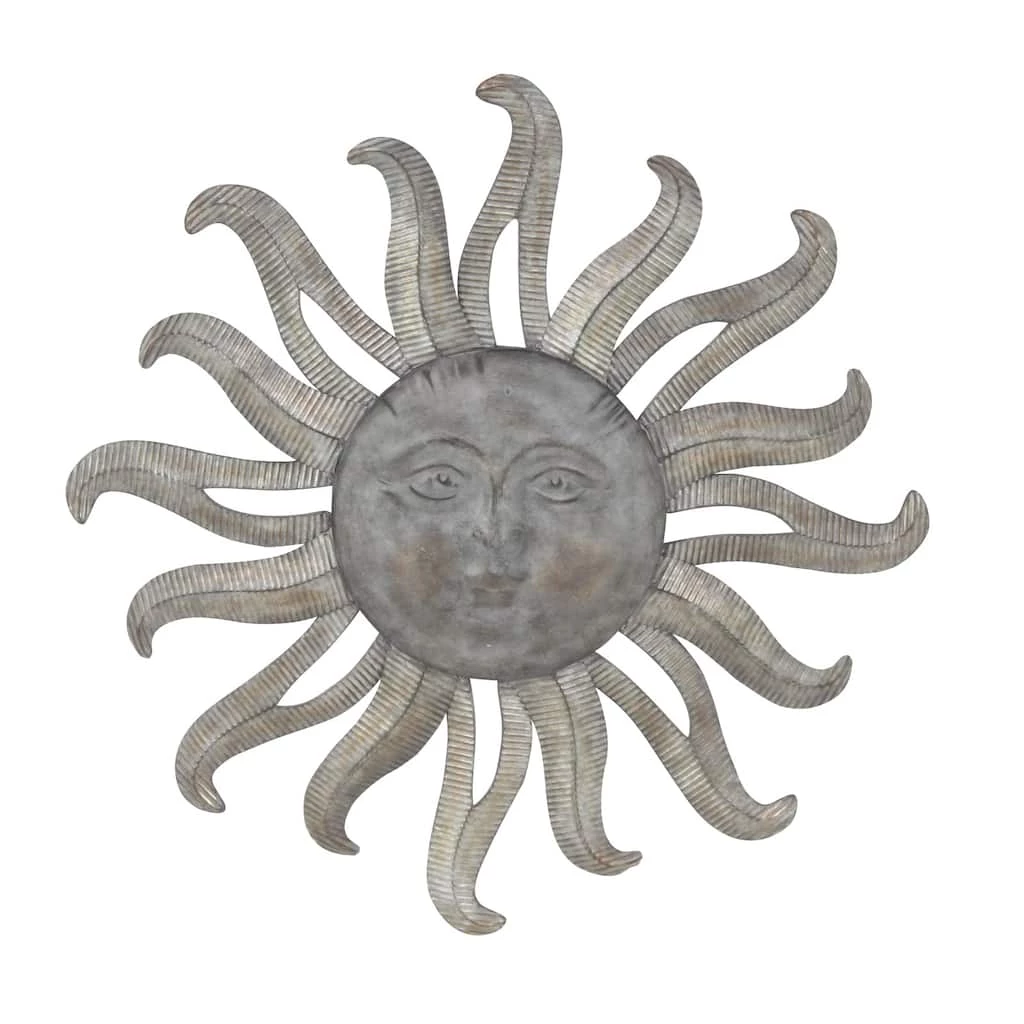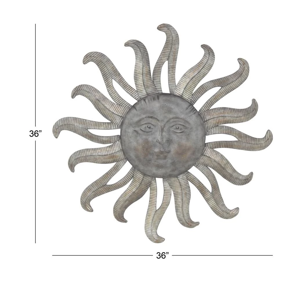 Elevate your indoor or outdoor space with the help of this round gray metal sun wall art. It’s bound to impress your guests with its textured metallic gray finish, curved rays, and facial details in the center.
