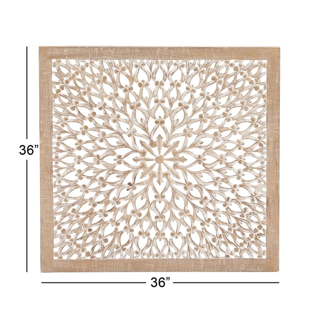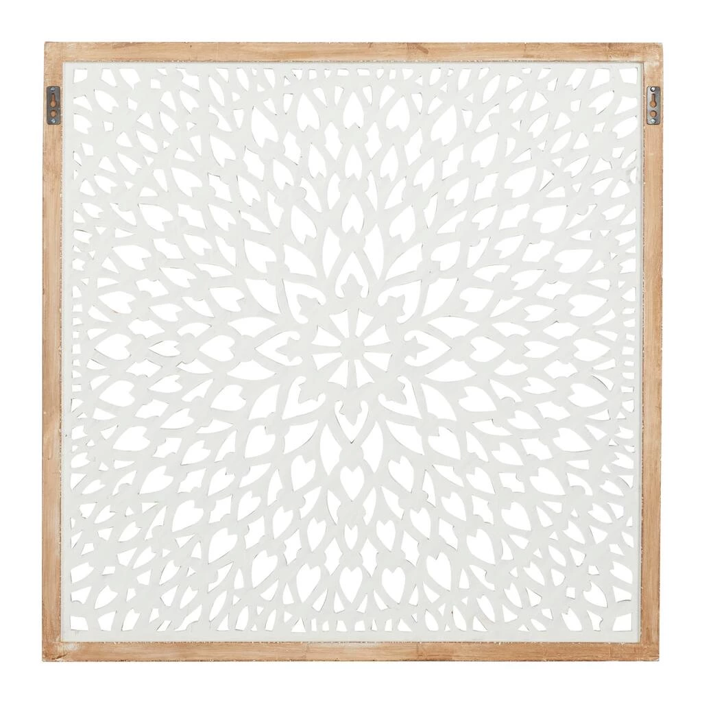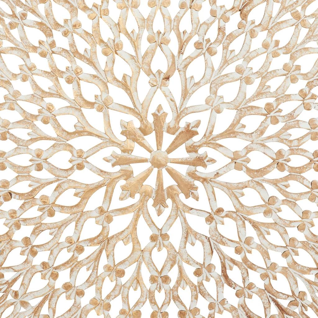 Accessorize your living space with this wooden wall panel accent piece. This stunning home décor features a square-shaped wall panel frame with a cut-out circular flourish design in tan and white finishes. Made of a solid pine wood, this wall decoration suits traditional spaces that crave for stylish home design. Hang this amazing piece in your home to bring a relaxing ambiance while adding a traditional atmosphere to your space.