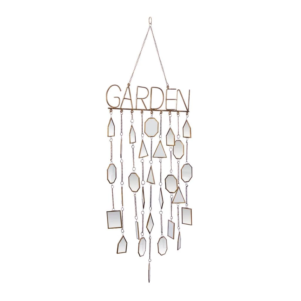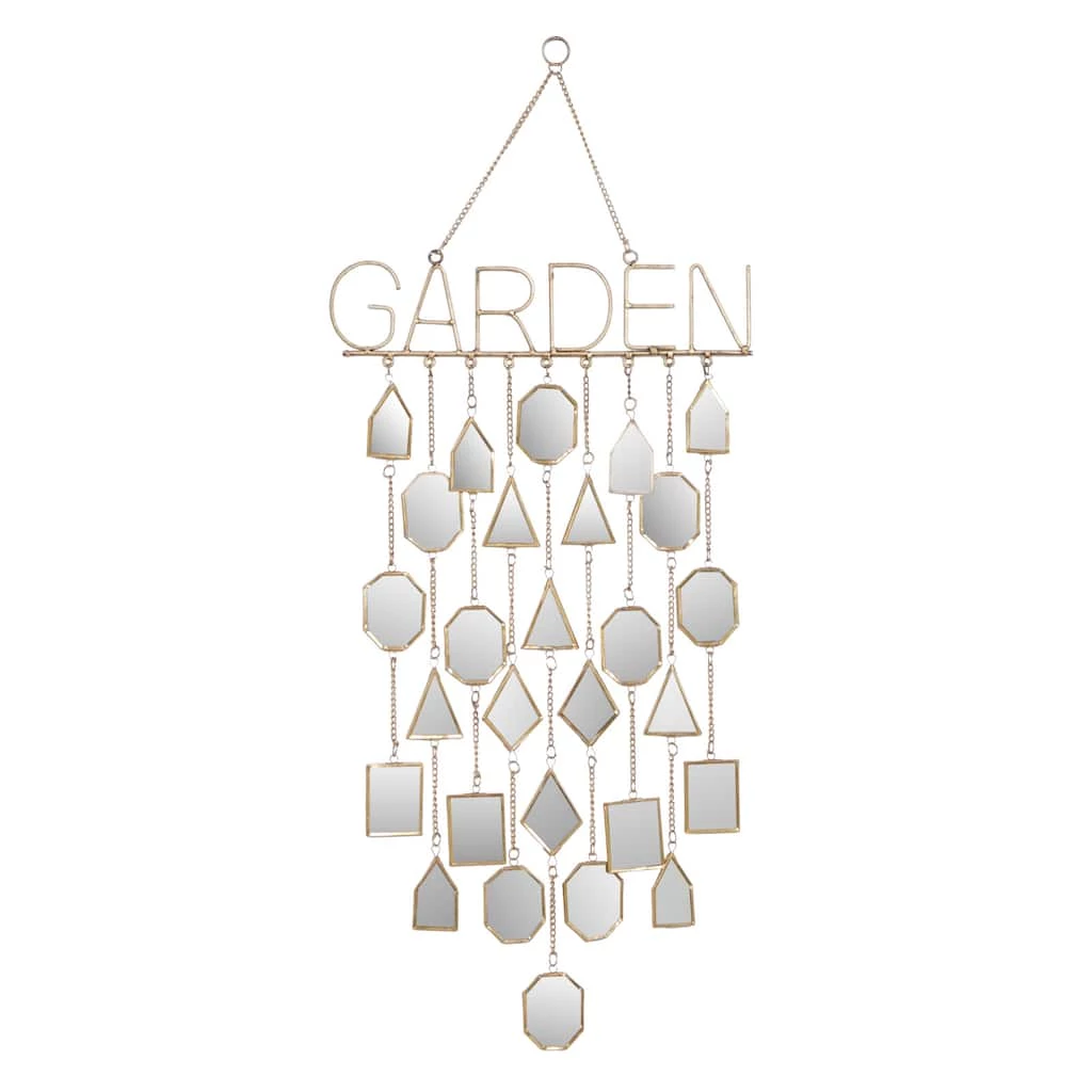 Let the world know where your garden begins. The top of this gorgeous wind chime reads “Garden” in bright gold letters. Below the word is a series reflective shapes suspended by gold-colored chains. It’s the perfect way to infuse light and energy into your space.