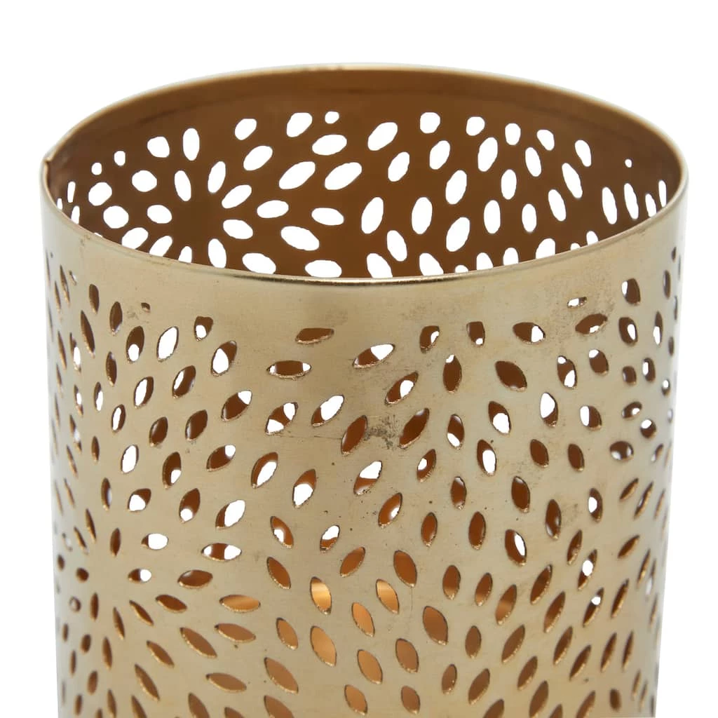 Never lose a pen again in your life. This round metal and gold textured patterned pencil holder will keep your pens safe in a luxuriously designed home organization dΓ©cor. The cylindrical structure prevents this piece from being easily toppled over all in a beautiful golden finish. The metal material is the perfect canvass to showcase the textured pattern design of this pencil holder.