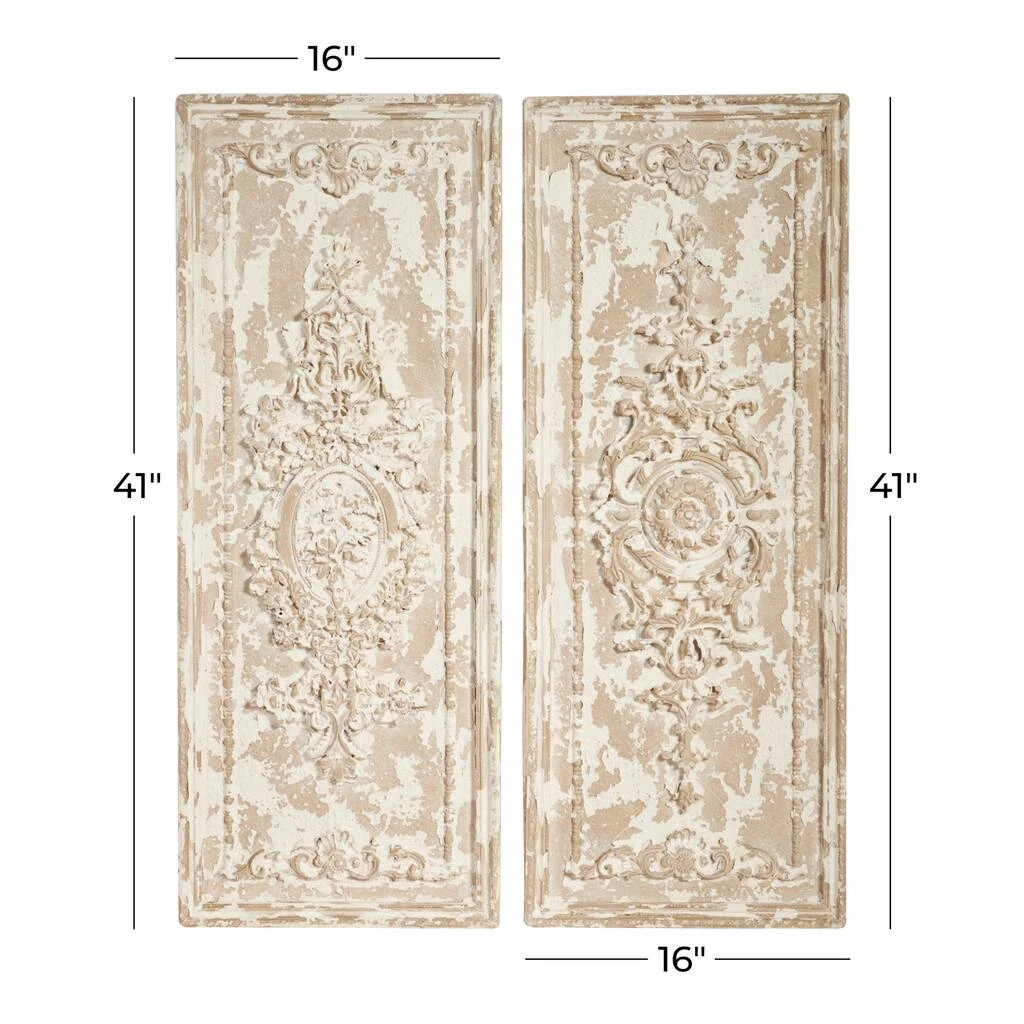 Add vintage flair to your home with these resin dΓ©cor panels. The weathered, beige panels introduce color, character, and dimension to a living room, bedroom, or office. Position them side by side to draw attention to a corner of the room. Mounting hardware on the back of the panels allows you to hang these on any wall with ease. This is a 2-in-1 set of carved abstract wall decorations. This item comes shipped in one carton.