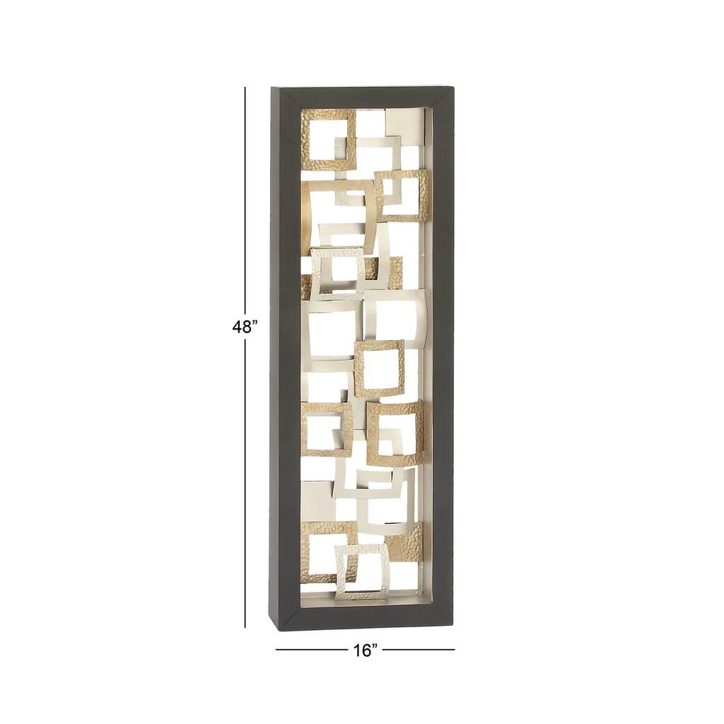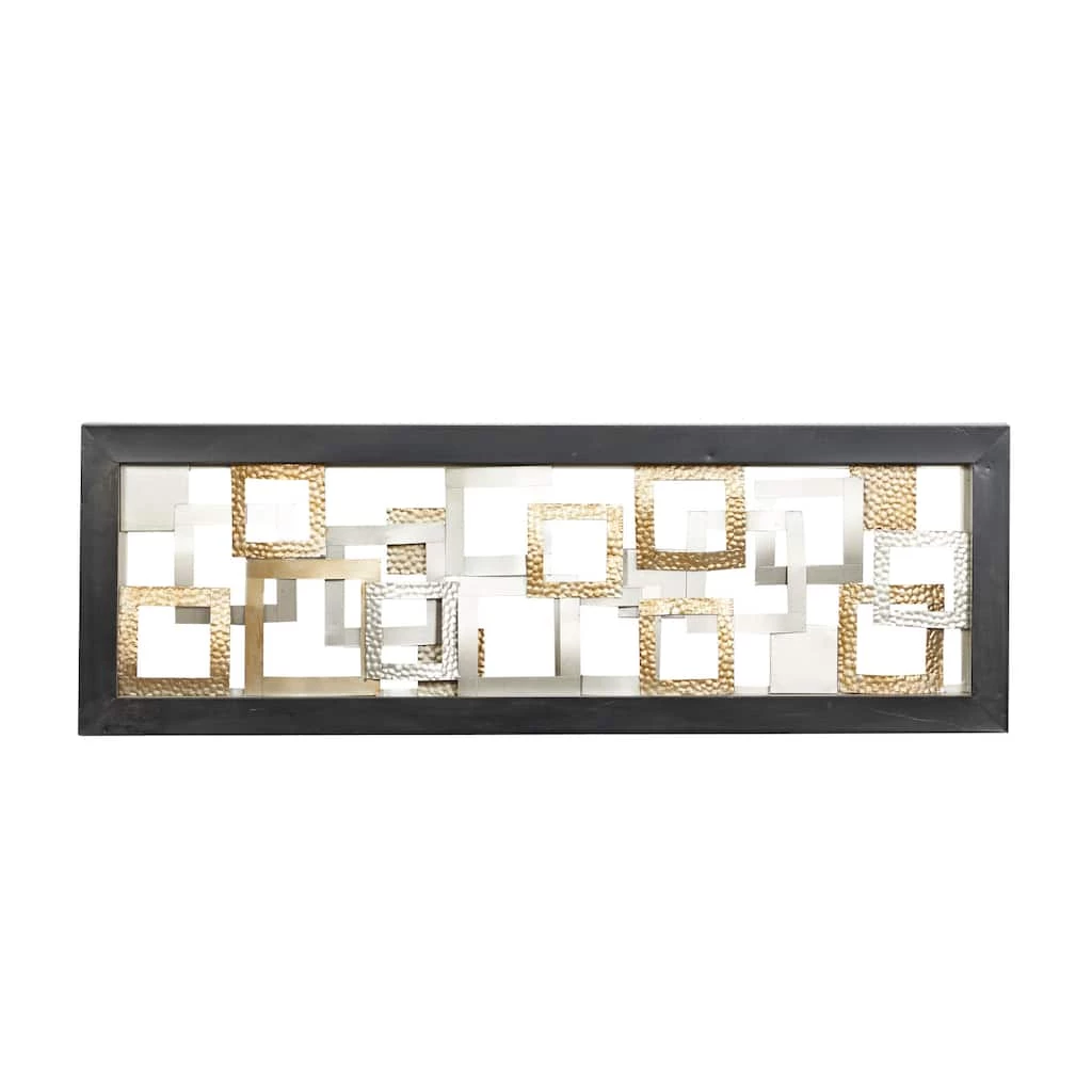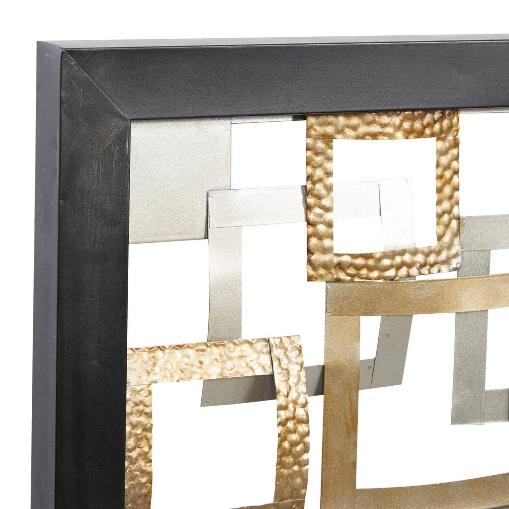 Hang a glamorous and extravagant piece of abstract-styled patterns wall art into your modern, glam, and contemporary living home styles by adding this iron wall art into your chic and stylish homes! Intricately crafted to perfection, this piece features interlaced squares, a showcase of flat-shaped interlaced square patterns in various sizes and a thick rectangular open design iron frame in matte black finish.