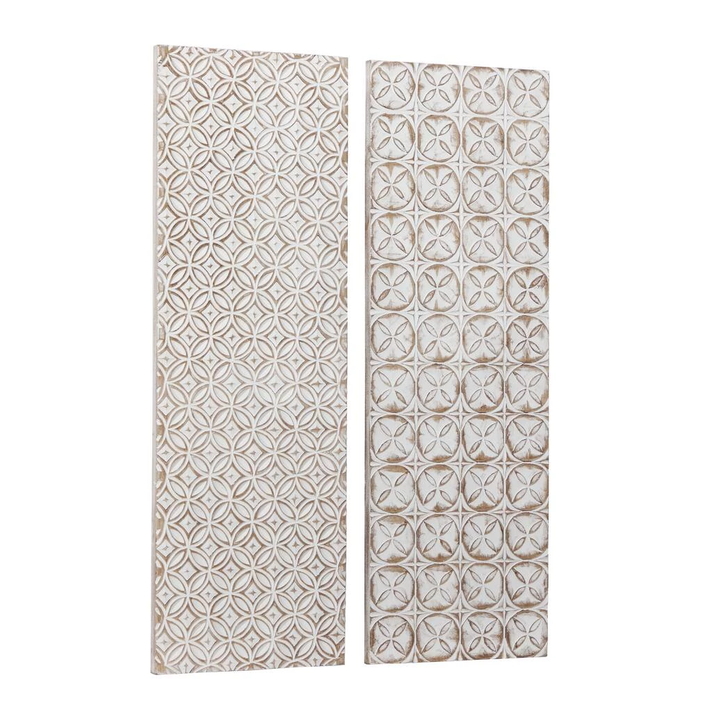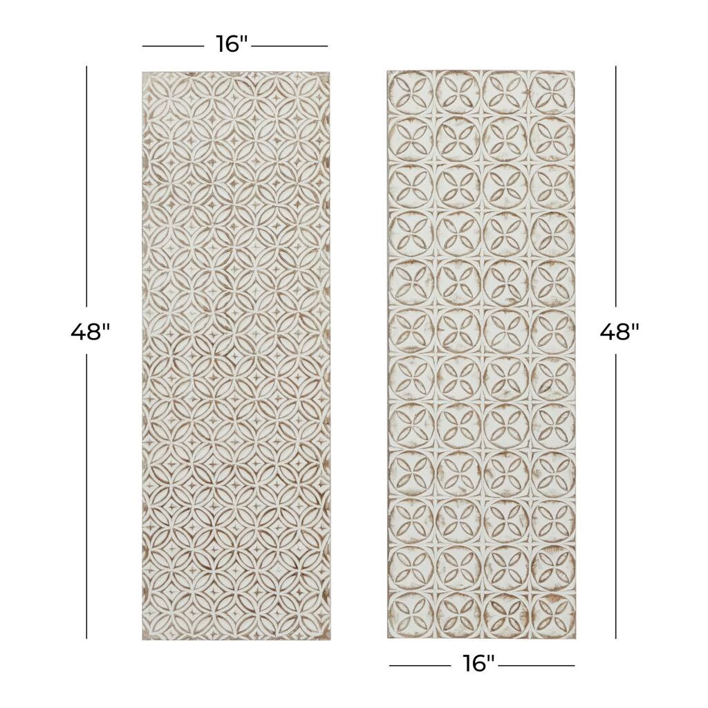 Add dimension to a living room or bedroom by hanging this pair of wood panels on your wall. Made in India, the two panels feature their own separate patterns, but they share an inviting white and beige color palette that can help lighten up a room. The panels are 48 inches in length, so they’re tall enough to occupy plenty of wall space.