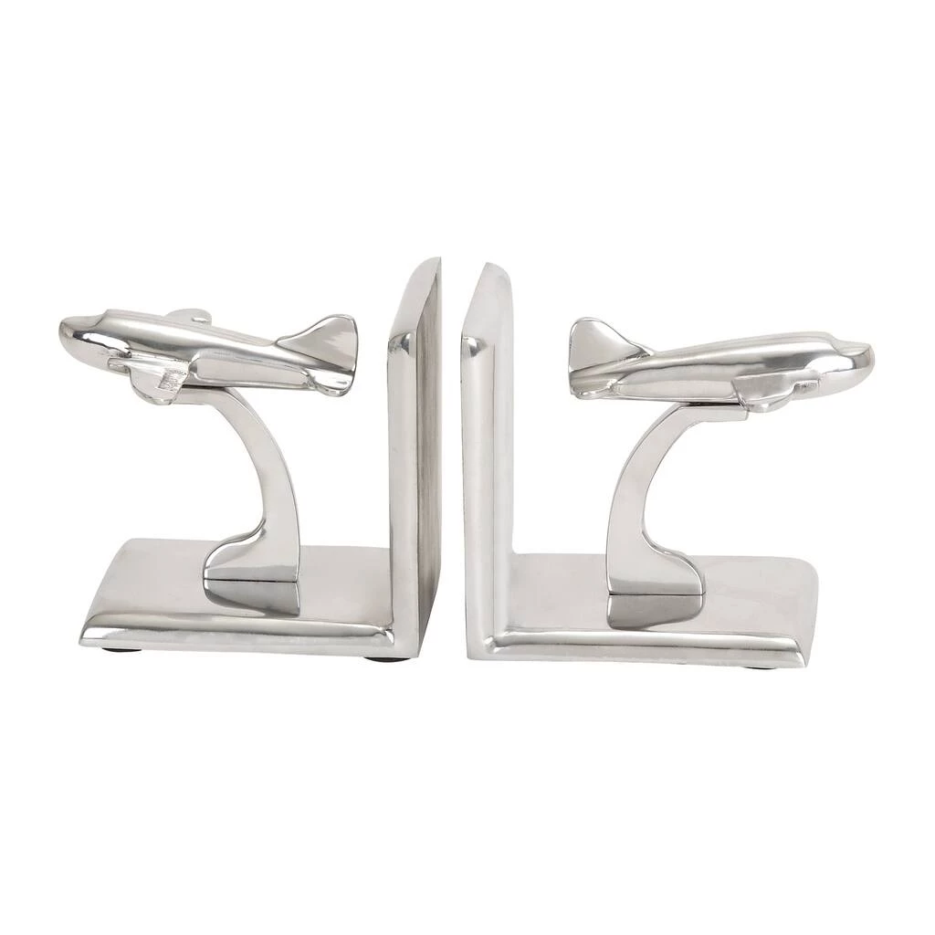 These airplane bookends are made with a decorative and functional design that lets them be used together or separately as eye-catching desk accessories and as reliable bookstands anywhere in the house. Placed on your office or library shelves, tables, or consoles, this bookend set is sure to bring some style and class to your room. Keep your books and magazine organize with this quirky and adorable bookends. Designed with black rubber stoppers at the base that prevent scratching furniture and table tops, as well as sliding around.