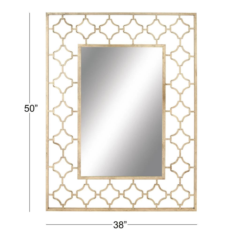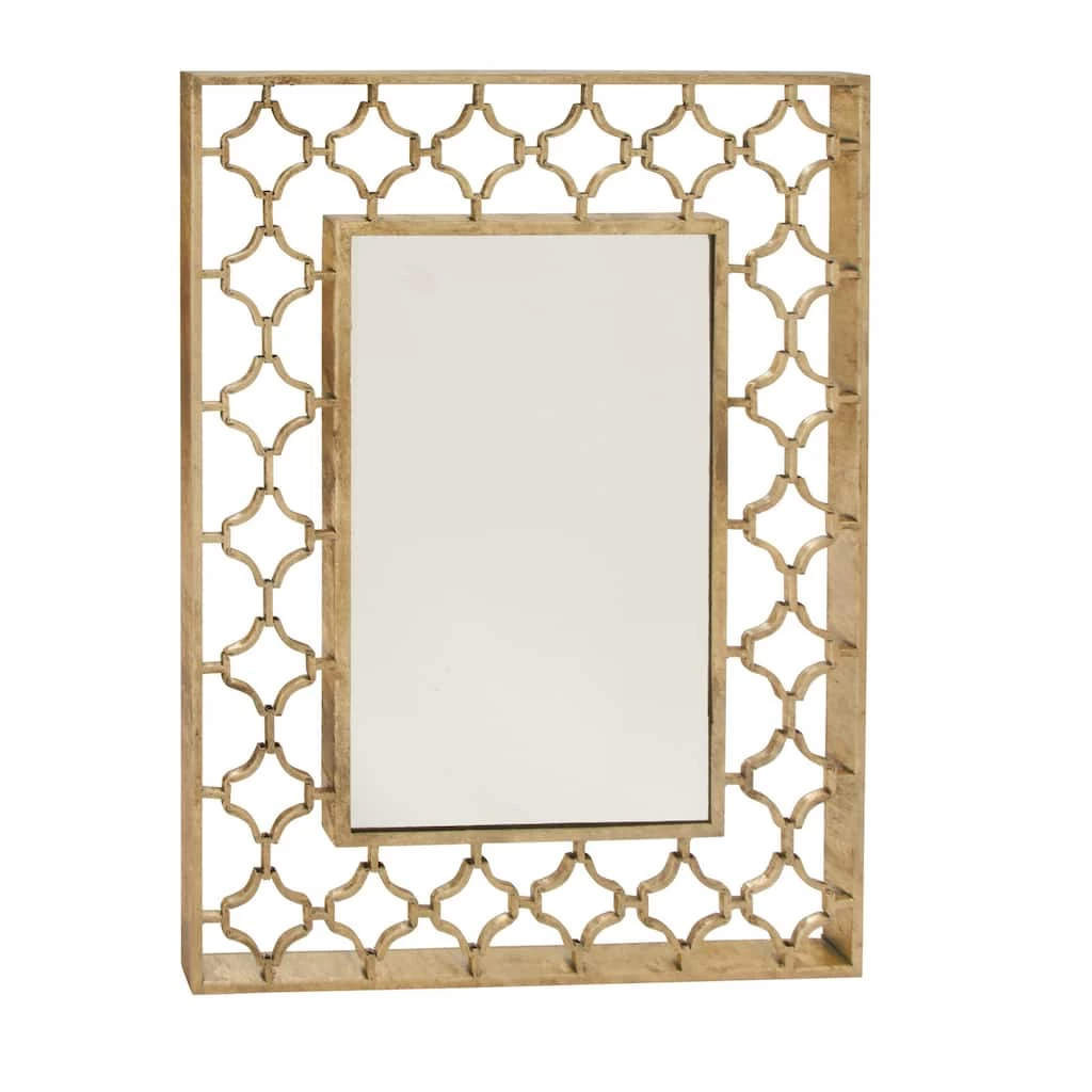 Add some elegance to your entryway, lobby, living room, or bedroom with this striking metallic accent wall mirror. This accent piece features a rectangular open-designed frame with an inner quatrefoil pattern in gold finish. With its impressive look, this stunning mirror suits any home with a glam interior. Apart from decorating your home, the purpose of this mirror is to bounce back outdoor light to a small room to make it look bigger. Pair this decorative wall mirror with house plants or other wall décor accent pieces to blend everything together perfectly.