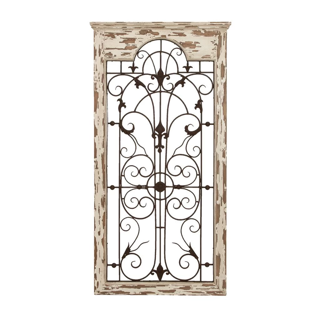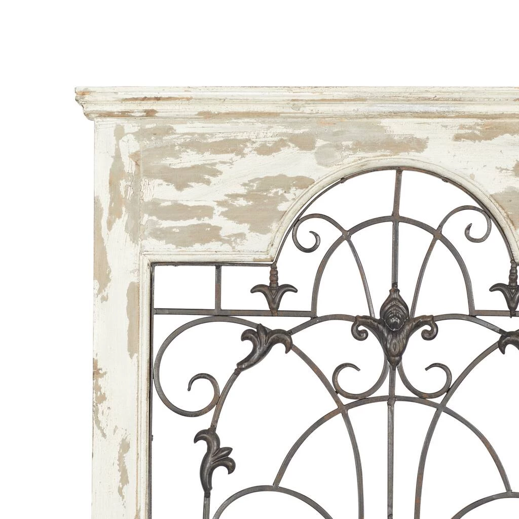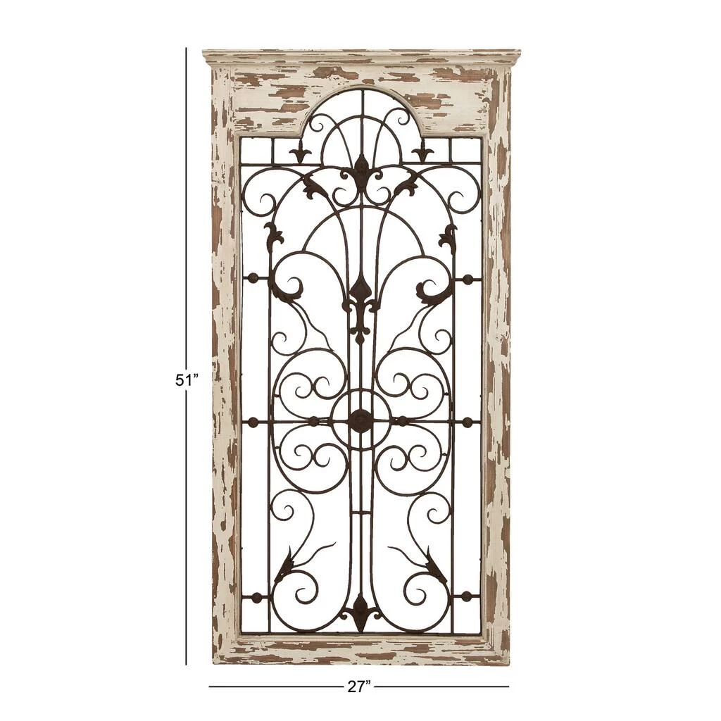 Whether your abode displays rustic, vintage style, or French provincial-inspired pieces, this 51″ White Metal Rustic Ornamental Wall Decor will add antique elegance and romance to any of your empty interior backgrounds. A distressed fir wood frame in white puts the spotlight on black iron-made scroll works. It also features an openwork design on its large mansion window-like construction.