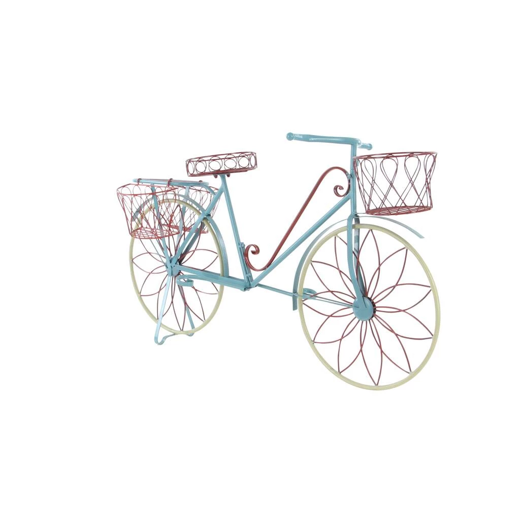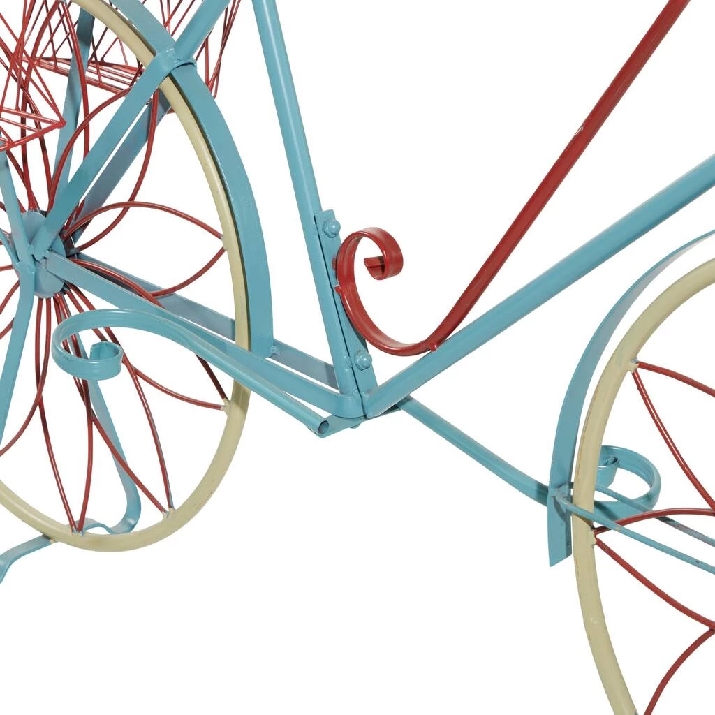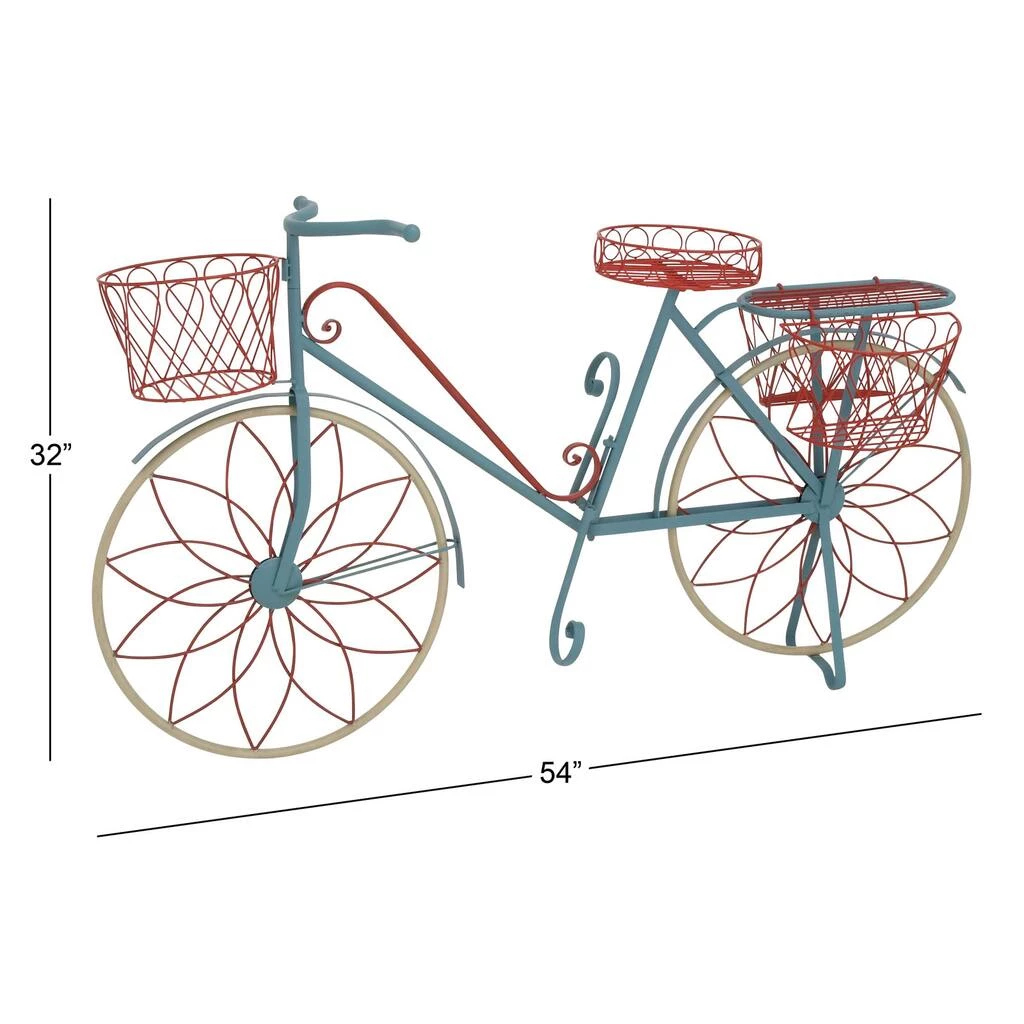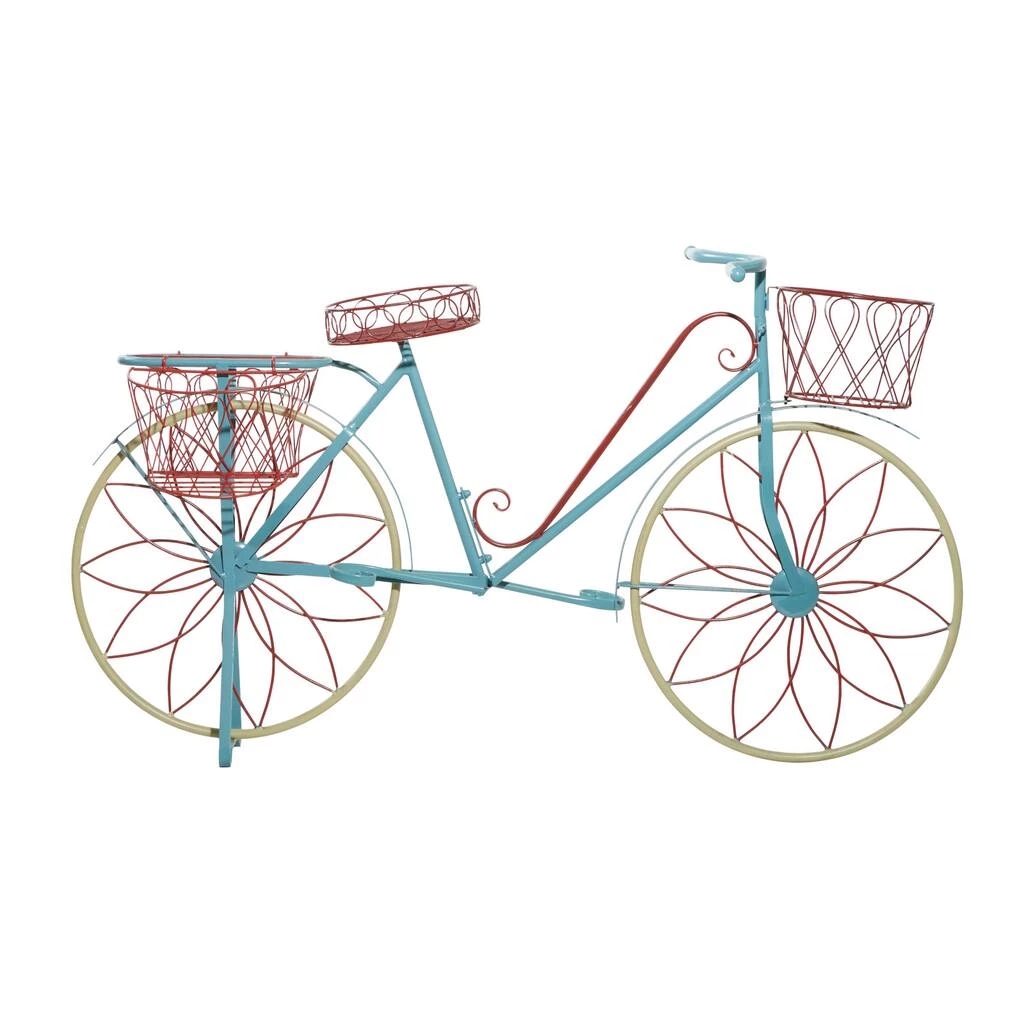 Showcase your beautiful plants in vintage fashion with this rustic, industrial-style, distressed metal 2-tiered plant cart and experience indoor greenery in a new light. This 100% metal plant cart features 2 tiers of flat beds where you can display your succulents or indoor flora. The lower bed is longer than the upper bed for a better view of your display. The cart features 2 large wheels on both sides, a metal handle, and the metal stand that keeps it steady at the front. The distressed turquoise finish of this plant cart will bring wholesome comfort into your vintage-inspired living space. This item ships in one carton. Maximum weight limit is 5 lb. per shelf.