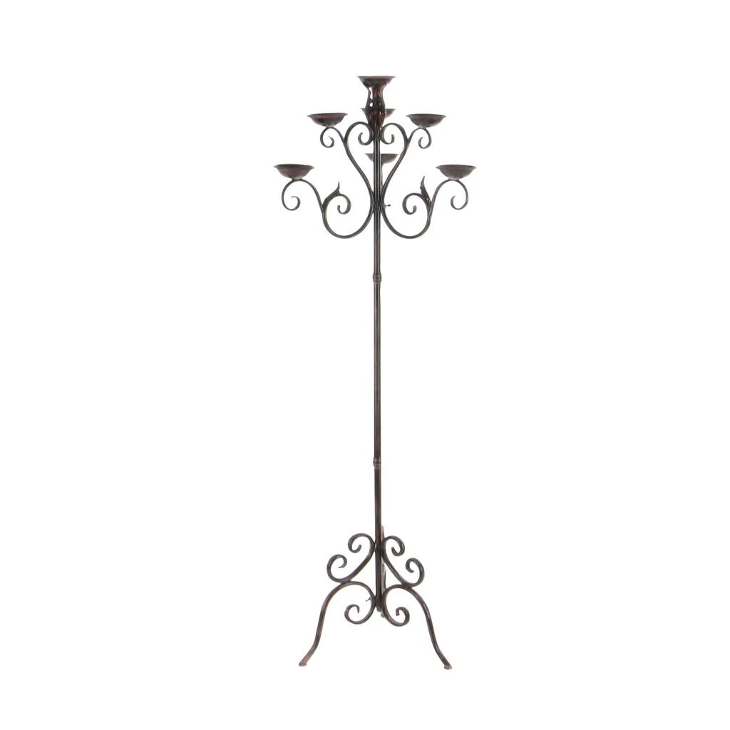 This black metal candle holder stand is a stunning focal point piece for entryways, living rooms, dining areas, and bedrooms. Delight your guests and make any occasion extra special by adding a lighted or flameless candle to this candle holder centerpiece. Made with a sturdy base, it is perfect for creating an elegant atmosphere at your table top or mantel. This item comes shipped in one carton.Β