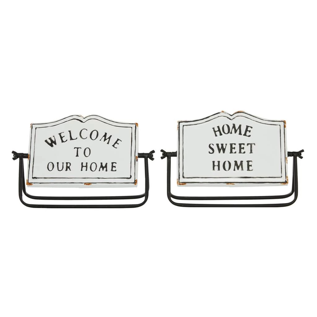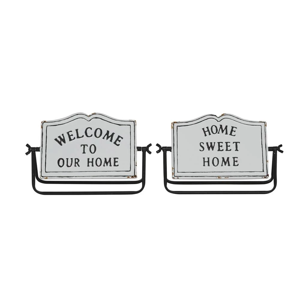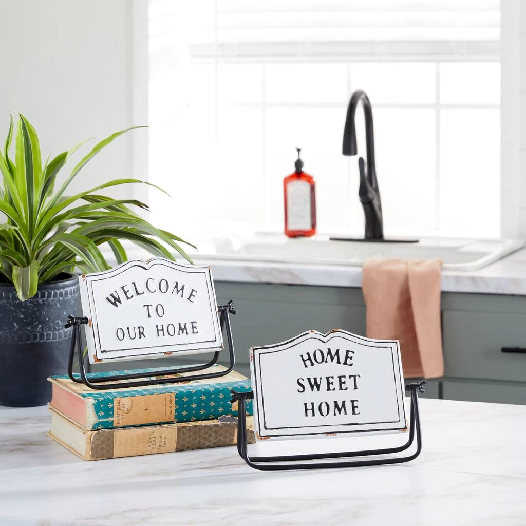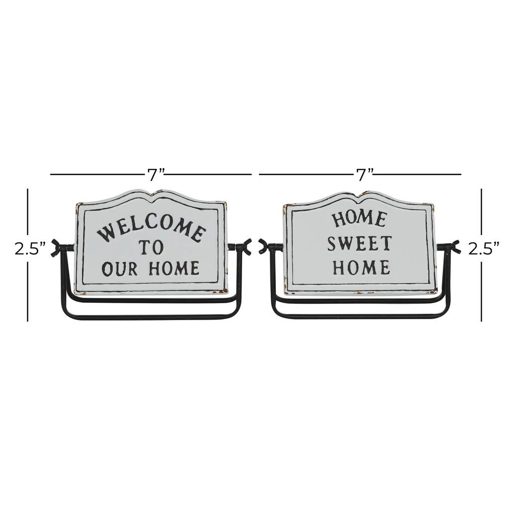 Open sesame! Welcome to our most humble abode. Add a bit of vintage-styled home decorations into your rustic themed home spaces with this set of 2, black and white “Welcome to Our Home” and “Home Sweet Home” tiny signages for your living room, shelves, tables, desks, and mounted bookcases. This identical set of small decors feature a rustic, distressed white finish exterior and a glossy black, all caps signage font.