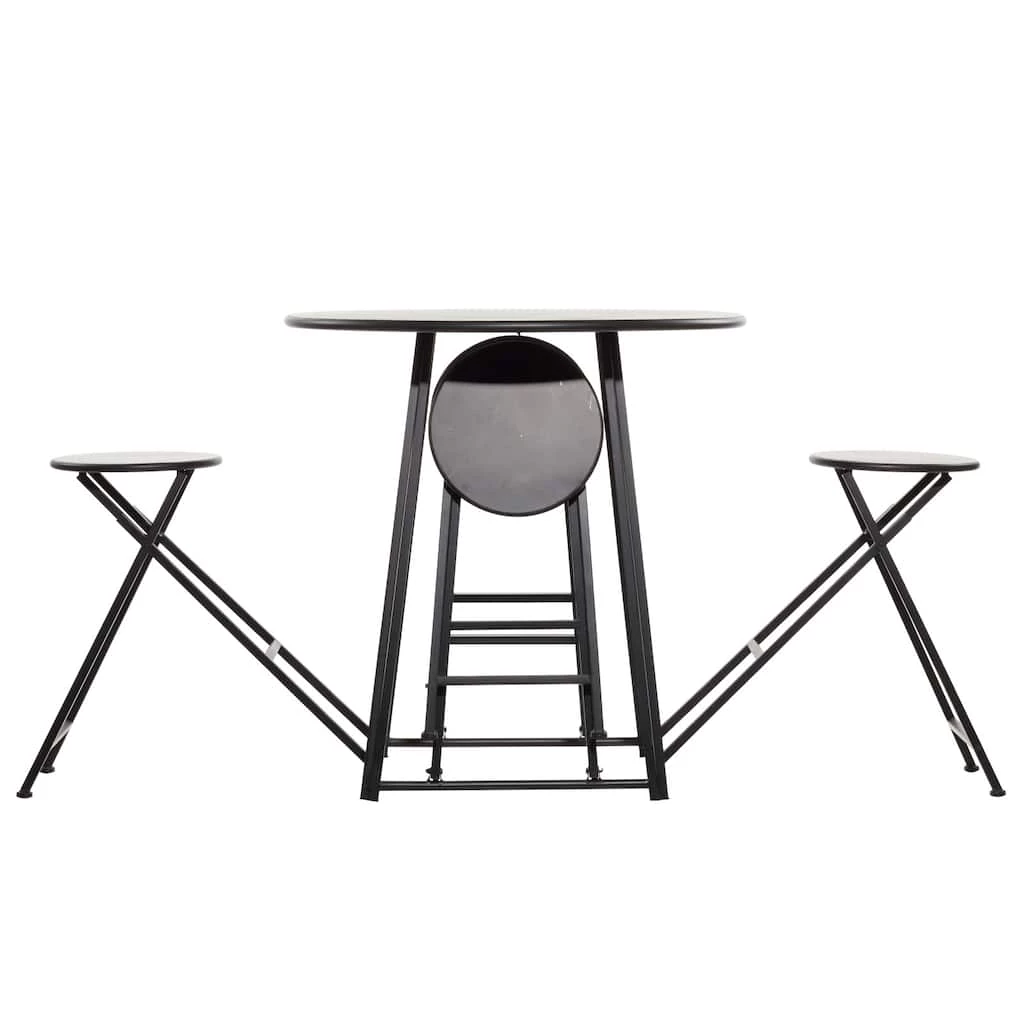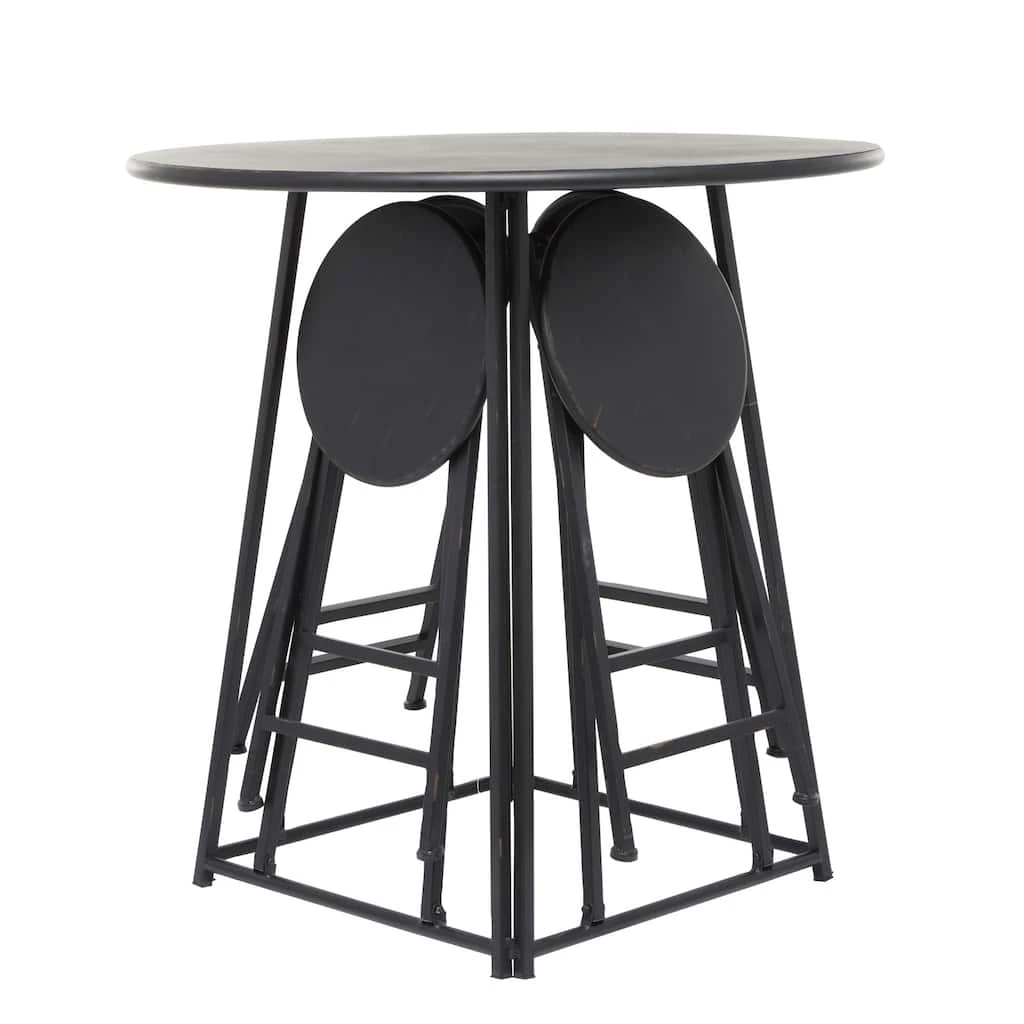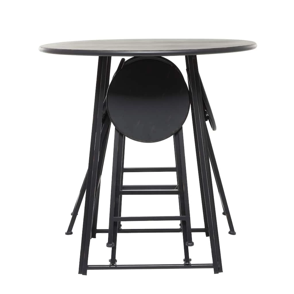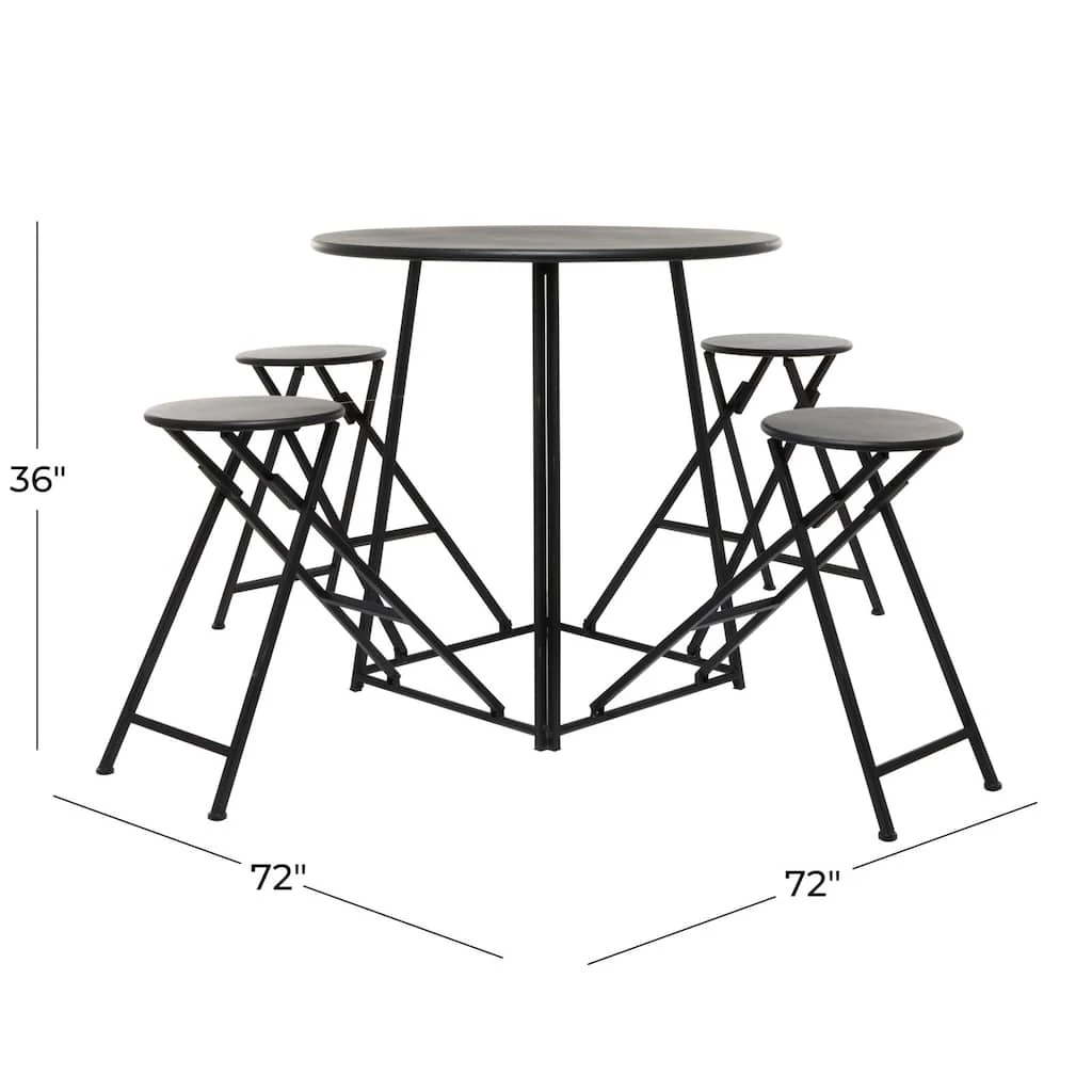 Enhance the charm of your dining area with this folding dining table set that features a round table with four foldable chairs. Made of iron, this dining table set emphasizes a delightful minimalist or contemporary look that will enhance the homey atmosphere of your interior space. This 4-seater dining table set offers the functions of refined dining experience with its simple and compact design, making it perfect for smaller spaces and allows you to host small dinner and cocktail parties with ease. Designed with protective leg base at the bottom that prevent scratching furniture and table tops, as well as sliding around.