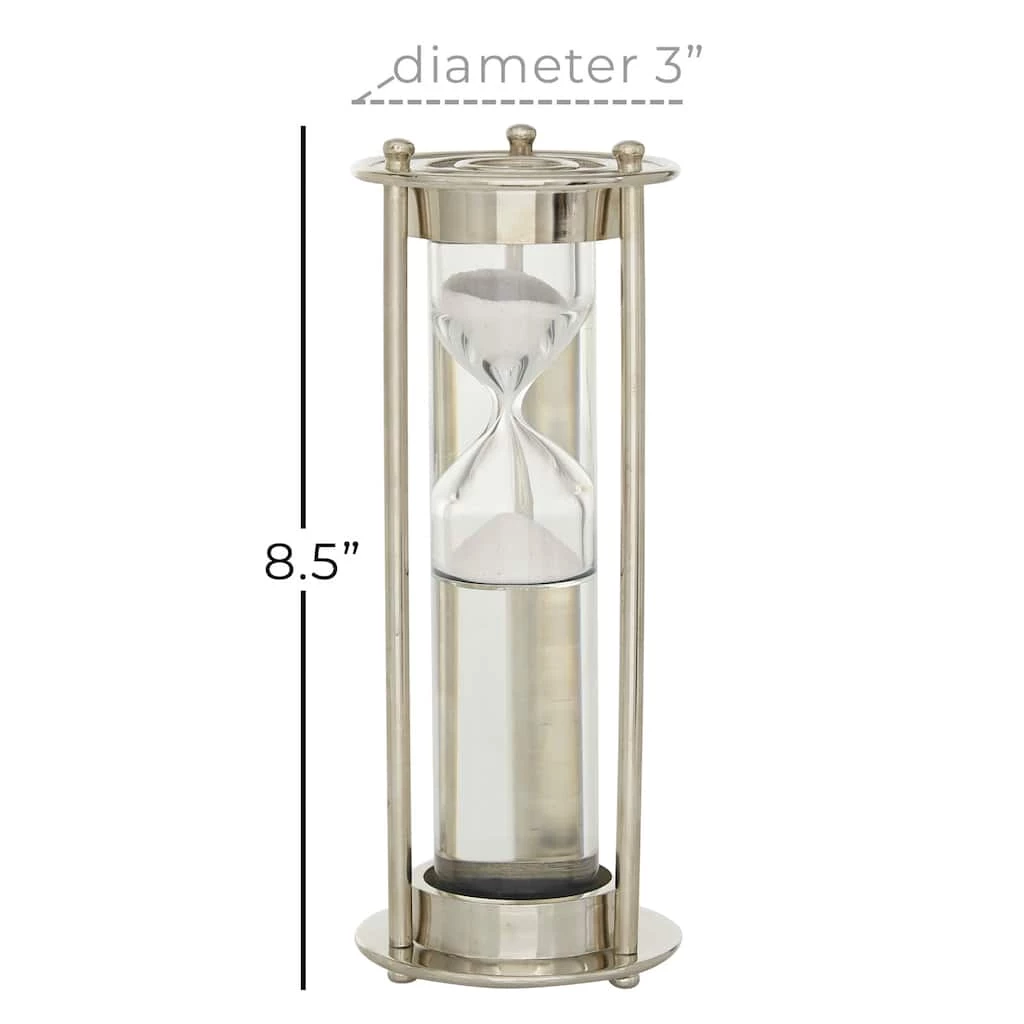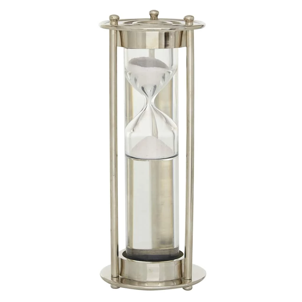 Itβs time to change how you keep track of time! Crafted in India, the aluminum frame features two rounded caps and three smooth pillars. The central tube contains water as well as an internal bulb filled with sand. When you flip the timer over, the internal bulb begins to rise in the tube, even as the sand slowly trickles down.
