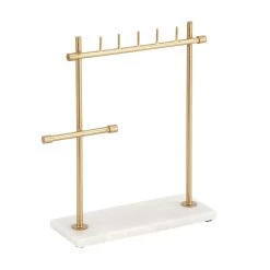 New 🔔 Gold Marble and Aluminum Modern Jewelry Stand, 13″ x 9″ x 3″ by Ivory and Iris ✨