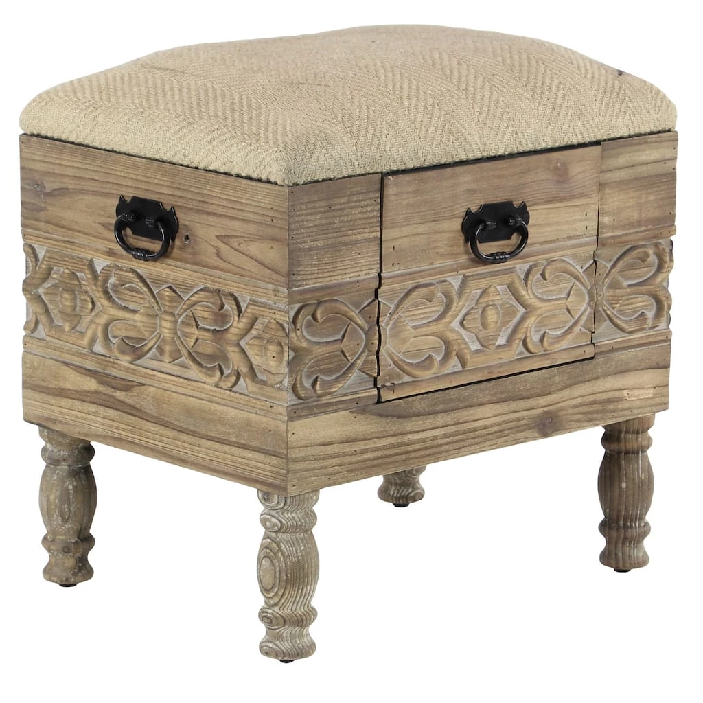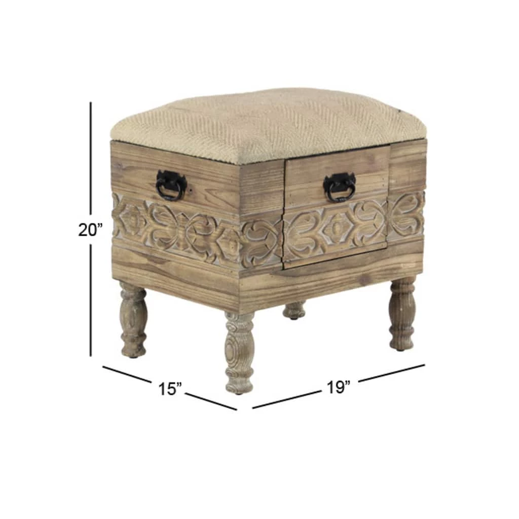 This brown farmhouse storage stool combines organization and comfort. Display anywhere inside your home and get cozy while being organized. Organizing isn’t boring when you have an amazing storage unit at your disposal. Filled with shoes, books, blankets and more, these storage units are a stylish and convenient way to store your stuff. Designed with rubber stoppers at the base that prevent scratching furniture and table tops, as well as sliding around. This item comes shipped in one carton.