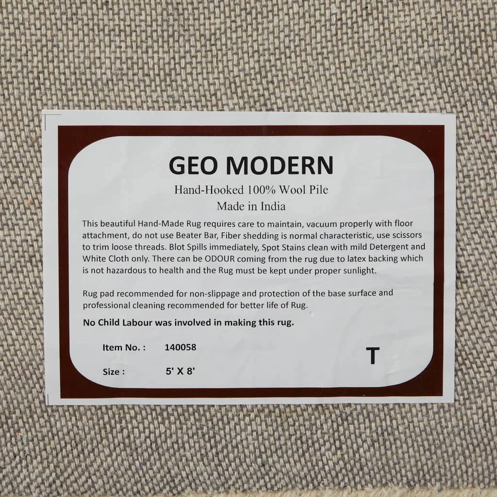 This area rug is an artistic display for your floor that also keeps your furniture protected and feet warm all year long. Add a splash of color and design with this rectangular area rug to help balance and fill uneven floor space. Our hand hooked geometric decorative rug is a great way to protect your hardwood floors while enhancing your contemporary room’s interior decoration. This rug has gray cotton cloth backing but rug pads is highly recommended. This item ships in one carton. Due to the handmade nature of this item, no two will be alike, there will be slight differences in shape, size, and color. Suitable for indoor use only. Avoid direct sunlight as it will cause the colors in your area rug to fade over time; place your area rug away from direct sunlight whenever possible. Use rug protectors under the legs of heavy furniture to avoid flattening pile. Rotating your rugs every 3-6 months will protect against uneven wear from foot traffic and furniture weight.